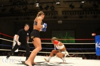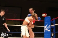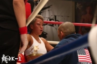 メロニーは開始から左フックと右ストレートを矢継ぎ早に繋いでKANAに襲い掛かり、左ジャブでKANAを腰砕けにしてダウンを奪う。