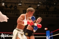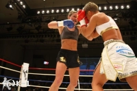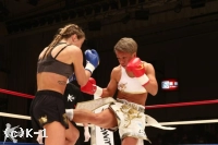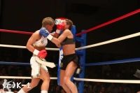 2R、離れた位置からKANAはステップインして打ち合いを仕掛け、右ストレート、左フックと繰り出しメロニーを押していく。次第にKANAの圧力がきいてくる。コーナーに詰め、右ストレート、左フック、左ハイと攻めるKANAだが、メロニーも左右ストレートでKANAを押し戻す。KANAがボディフックを打ち込めば、メロニーはストレートを当て返す。KANAは左目が腫れて塞がり、視界が奪われている。