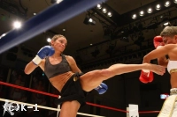 3R、足を使ってリングを回るメロニーに対し、KANAは距離を詰めフックを顔・ボディと上下に打ちつける。KANAはロープ際にメロニーを追っていき、右ストレートでアゴを跳ね上げる。だが、メロニーは闘志を落とさずよく伸びる右ストレートを飛ばしてくる。KANAは頭を振ってメロニーのストレートをかわしていたが、ここで再びメロニーの右ストレートがとらえ痛恨のダウン。