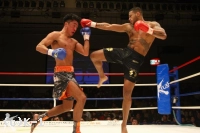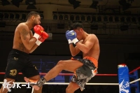 廣野はサウスポーで上体を振り、左インローを入れる。対するピケオーは右ハイキックを飛ばし、続いてボディストレート。重い音が場内に響くが、廣野は表情を変えない。ピケオーのヒザ、ハイキックをブロックしながら左ストレートを伸ばしてヒットを上げる。ピケオーは前蹴り、右ボディアッパーと攻撃にボディを織り交ぜる。対して廣野は左ストレート、左インロー。ピケオーと胸が合っても廣野は押し負けない。