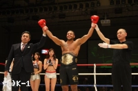 「試合の感想は?)正直、自分のベストパファーマンスはできなかったのが残念です。廣野選手はタフでKOできませんでした。なぜか、ジャッジでドローがあったのは疑問ですが、結果的にはよかったです。(廣野選手は距離を詰めてきたが、やりやすかった?)廣野選手はやりづらい選手だったと感じています。KOで仕留める試合をしたかったんですが、距離を詰めてくるせいでパンチが打てなかったです。でも、最終的に彼に勝つことができたよかったです。(次の試合はどんなかたちにしたい?)自分の中でいえることは、相手をKOしたい。次は誰かわからないですが、ここで約束します。必ずKOします。(ファンにメッセージを)応援ありがとうございます。最初の約束どおり、KOできず、ダウンもできませんでしたが、これだけは約束します。次は誰かが倒れます」