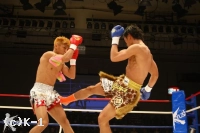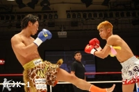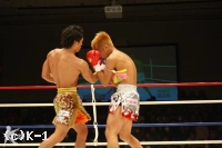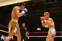 3R、カウンター狙いの待ちの戦法ながら、鈴木は巧みに展開して堀尾にクリーンヒットを与えない。逆にこのラウンドはジャブ、堀尾の前進に合わせた右ストレートとヒットが増えてくる。さらに、連打からボディにヒザを打ち込むと、堀尾はダメージを見せて後退。得意の跳びヒザを繰り出す堀尾だが、鈴木は再び前に出て行きボディへのヒザと攻勢。堀尾もハイキックで反撃するが、鈴木が左フックでもグラつかせて終了。