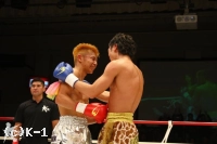 「試合の感想は?)堀尾選手は前から強いなと思ってましたけど、この試合に備えて凄く準備してきました。それを出すことができたと思います。でも、まだ自分の実力はすべて出せてないのでこれからも期待してください。(今後の目標は?)堀尾選手に勝てたので、-55kg級のベルトの挑戦者は僕でおかしくないと思います。4.22のK-1のトーナメントにも出場します。たくさんの応援団もつれていきます。今年はタイミングがよければ、KrushとK-1のベルトを獲れればと思っています」