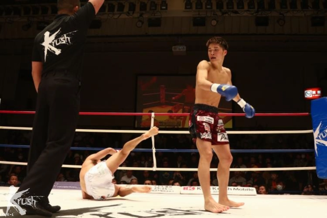 お互いダウンが1度ずつとなるが、山本は安保が蹴りを放たんとしたところに左フックをタイミングよく合わせて2度目のダウンを奪取。しかし立ち上がった安保は右ミドルを音を立てて打ち込み、そこから右ストレート、左ストレートと繋いで山本に2度目のダウンを与える。
