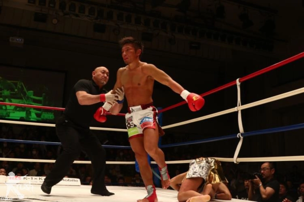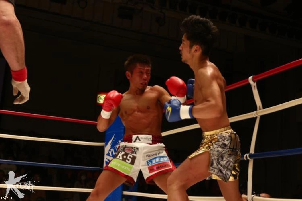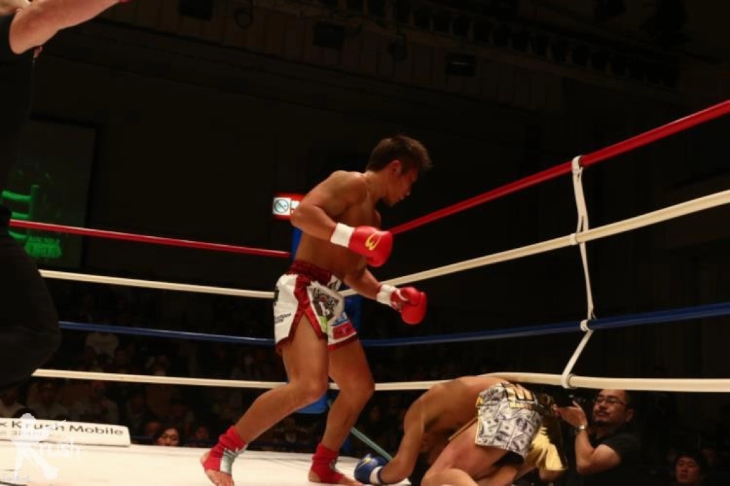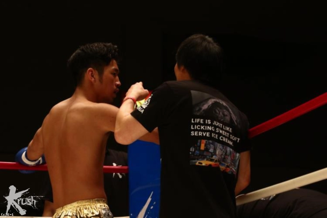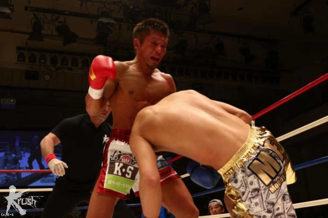 2R、ロープを背負わせる中澤に対し篠原はジャブ、左フック、右ストレートと放って下がらせんとするのだが、中澤は下がらず左フックを返し、そこから左アッパーをフォローして篠原をダウンさせる。フィニッシュに向かった中澤がラッシュを浴びせると篠原は頭を抱えるように倒れ、中澤がKOで勝利した。