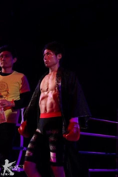 2R、出貝は手の平を軍司に向けるような構えで前進。これで軍司のパンチを弾いてローに繋げる。軍司が左右のフックを上下に走らせても、出貝は下がらず打ち合いに応じ、軍司をプッシングで下がらせる。だが、軍司は右クロスを打ち込むとそこから左フックを顔・ボディと決めて優勢となり、出貝を下がらせ2Rを終える。