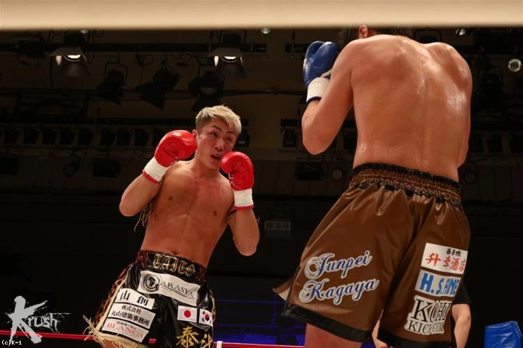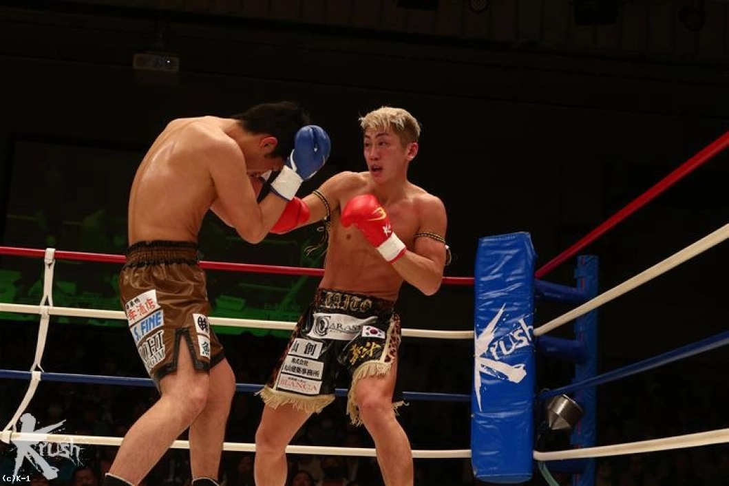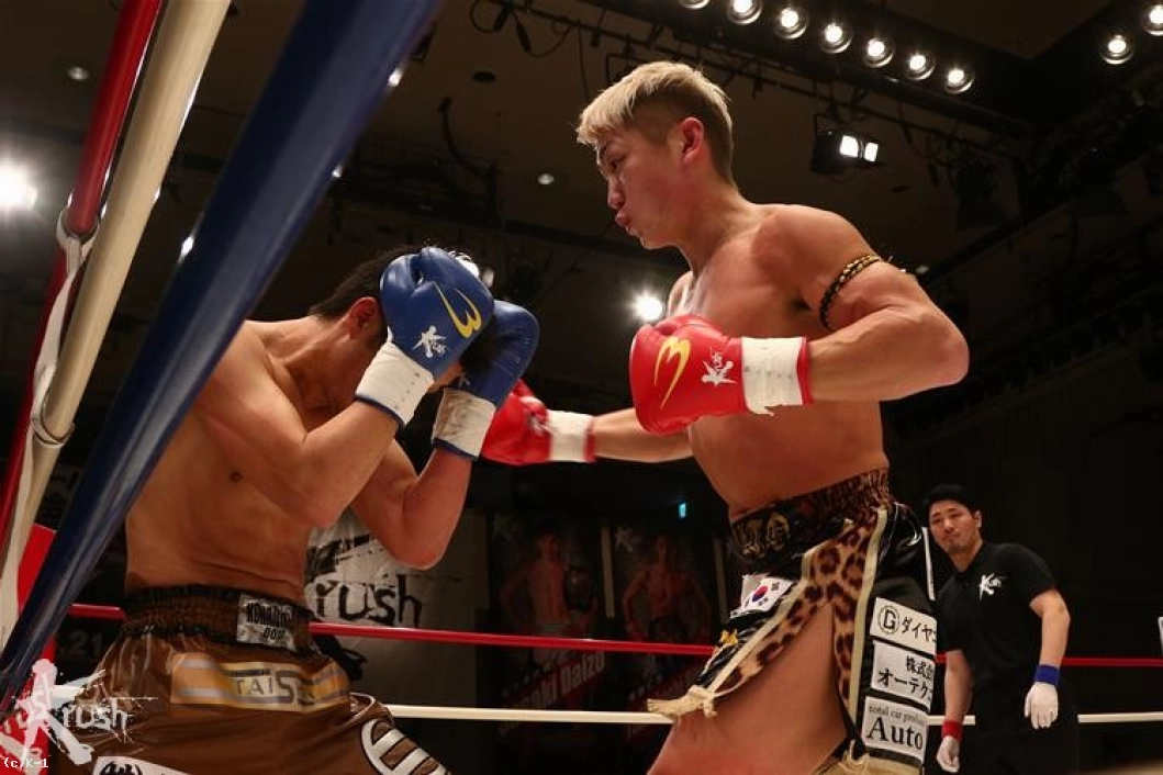 3R、ダウンの失点がある泰斗はパンチからローに連係するコンビネーションで前に出て行く。青津のガードが一瞬落ちた瞬間に左ストレートでとらえるが、青津はすぐにまたガードを固め、泰斗の攻勢をせき止める。攻めて出て押していく泰斗だが、ガードの固い青津を切り崩すには至らない。青津がガードから返した左フックで泰斗を止めて終了となる。