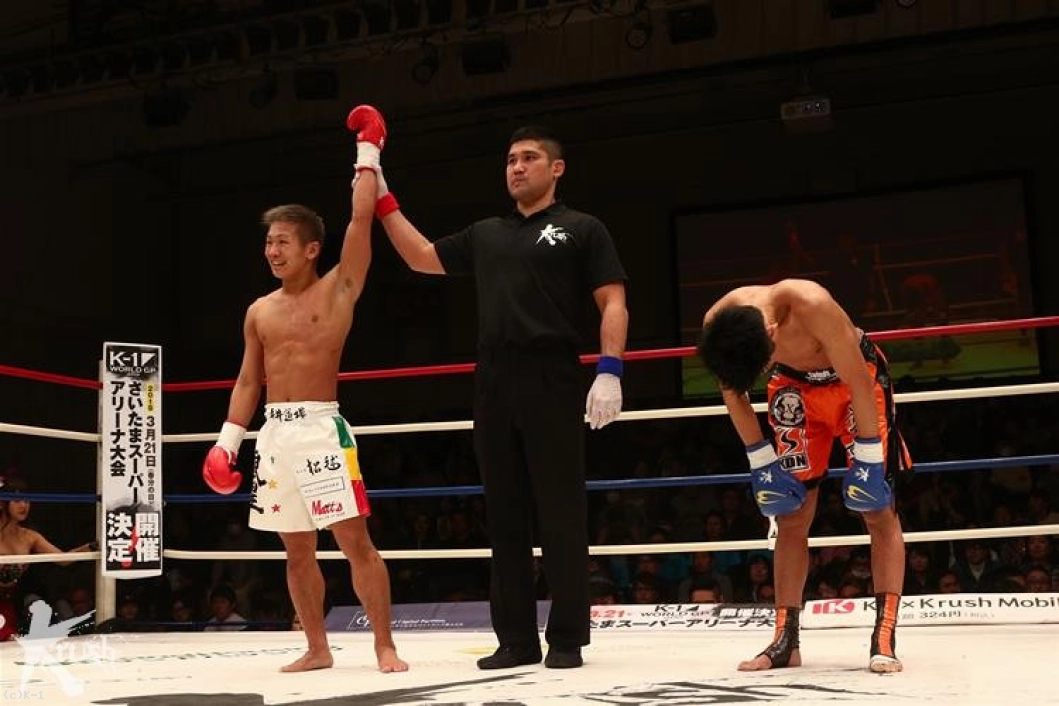 「(試合を振り返って?)今回は勝ちにいくという姿勢だったんですけど、気持ちが前につんのめりすぎて、習った技術が出なかったです。でも、勝つことができてホッとしてます。(今後の目標は?)まだ、Krushでは1勝1敗なので、勝ちを重ねて王者を目指してがんばります」