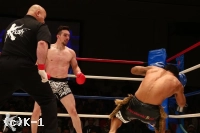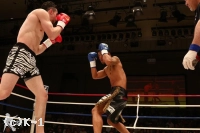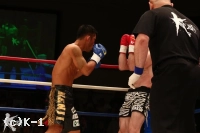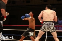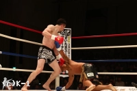 1R、KENJIの右ローの後、両者の左フックが相打ちになる。KENJIはコーナーに詰めて左右フックで木村を襲うが、木村は逆に右クロスでKENJIをフラつかせ、これでコーナーから逃れると、左フックでKENJIの耳の後ろをとらえてダウンを奪う。