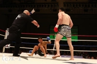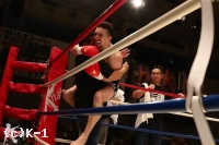 戦闘再開に臨むKENJIだが、強打のダメージが残っている様子で、左フックをジャストミートされ、2度目のダウンを喫する。そしてさらに前に来たKENJIに、しかしショートのストレートをまとめ、これで3度目のダウンを奪って復活勝利。木村はセコンドと勝利を喜んだあとで歓喜の涙を見せた。