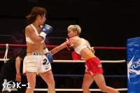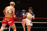 判定は29-29、30-29、29-28の2-0で平岡。キャリアと実績で勝る女子キック9冠王Tigerを降した。