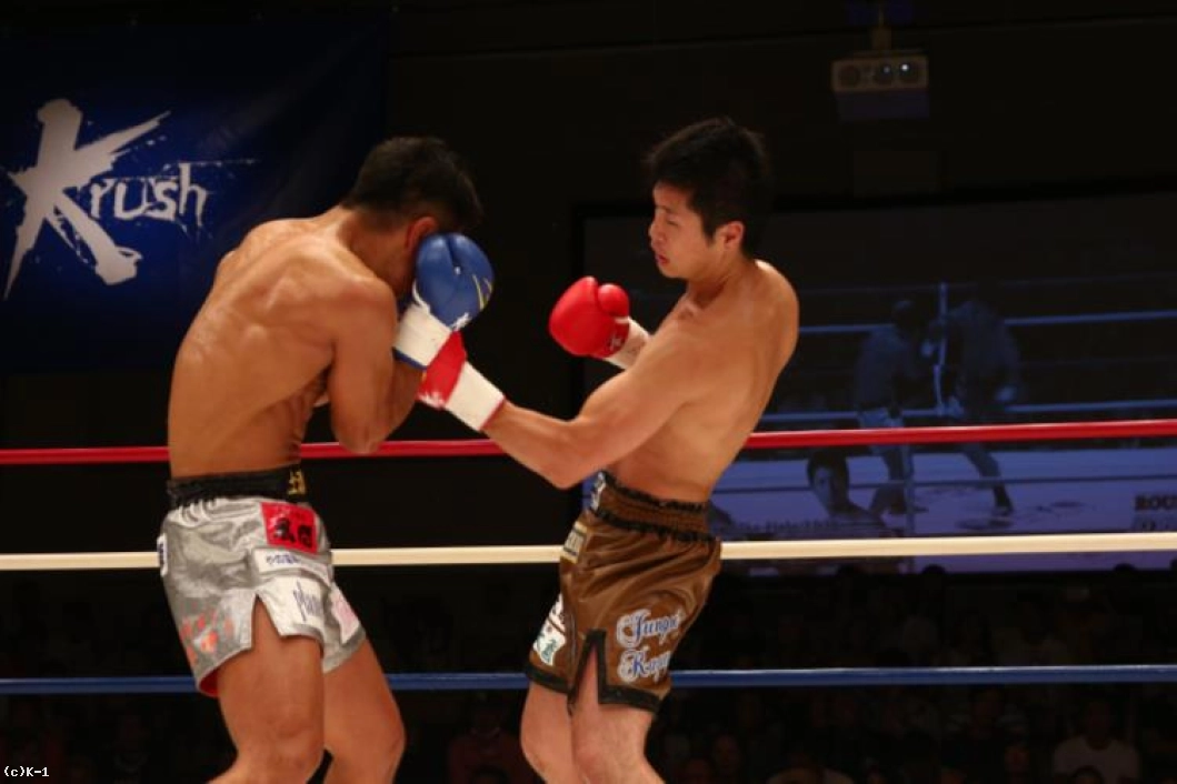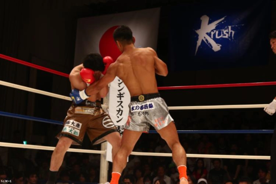 「(試合を振り返って?)倒そう倒そうとしてしまったのと、相手が凄くやりづらかったです。(初めてのKrushの会場の感想は?)歓声が凄く大きくて、やっていて気持ちよかったです。でも、ちょっと試合内容は満足できないですね。(今後の目標は?)Krushの-63kgのベルトと、K-1のライト級を目標にがんばります」