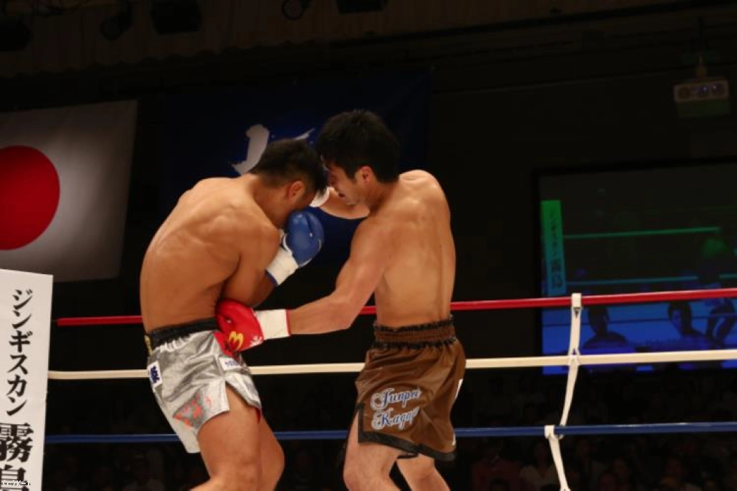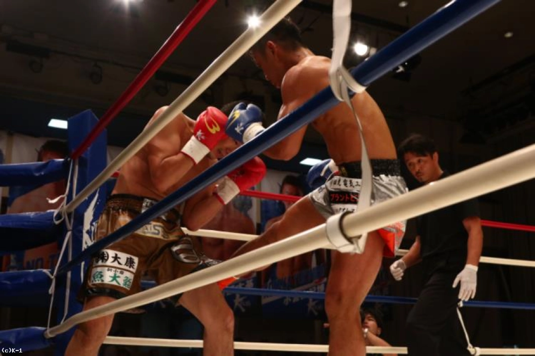 3R、このラウンドも前に出る恭士郎は接近戦から左ボディフック→右ローキック。恭士郎は右ボディフック、左ローと青津をよく見て攻撃を打ち分ける。だが、青津もタフで消耗は感じさせても大きなダメージは見せない。