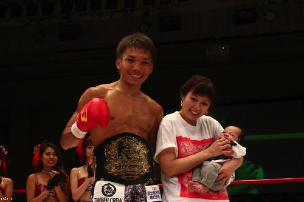 「(試合を振り返って?)2月にウェイ・ルイ選手に負けて、考えることがたくさん出てきたというか。このKrushのベルトを獲って防衛して、K-1に上がることに満足してた部分がどこかにあって。それが2月に出てしまって。でも、強い選手に負けたことで、自分の未熟さを痛感して、そこで強くなれるきっかけができたので。それで前戦の中国、そして今回の防衛戦と勝利を飾ることができました。(どういう王者の姿を見せたい?)Krushの-63kgというベルトは歴史のあるものなので。Krushイコール-63kgだと(初代王者・梶原)龍児さんも言ってましたし。自分もそれを肌で感じているし、その気持ちがあったからこのベルトにたどり着いたし。その気持ちを忘れずに突き進んでいきたいなと思います。(今後の目標は?)課される課題を克服していくというか。人生もそうですけど、満足したらそこで伸びしろはなくなると思うし。格闘技だけじゃなく、人生は満足せずに日々努力して、高みを目指して生きていくことが、人間としても成長に繋がると思うので、そういうところを表現していきたいと思います。(試合後、お子さんもリングに上がったが?)自分の中で(子どもを)力にして挑んだので。自分だけじゃなく、周りの支えもあって、こうしてリングで輝けるので、おごらずに。自分の息子がドンドン大きくなっていく姿をお客様にも見せられればと思います」