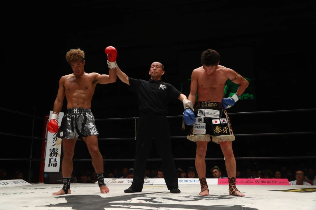 3R、泰斗は前に出てロー、バックブローと見せる。そしてさらに右ストレート、左フックと放ってヒットを上げる。ラウンド開始当初こそ前進を阻まれた東本だが、左のパンチをスイングフック、ボディストレート、ストレートと使い分けて泰斗を押していく。だが、泰斗も東本を押し返して右ストレートで応戦。最後は両者が激しく拳を振るう中終了のゴングとなる。判定は30-28、29-29、29-28の2-0で東本。対泰斗の戦績を3戦3勝とした。