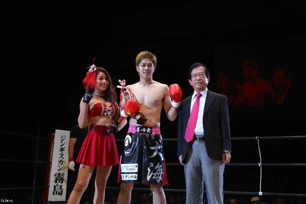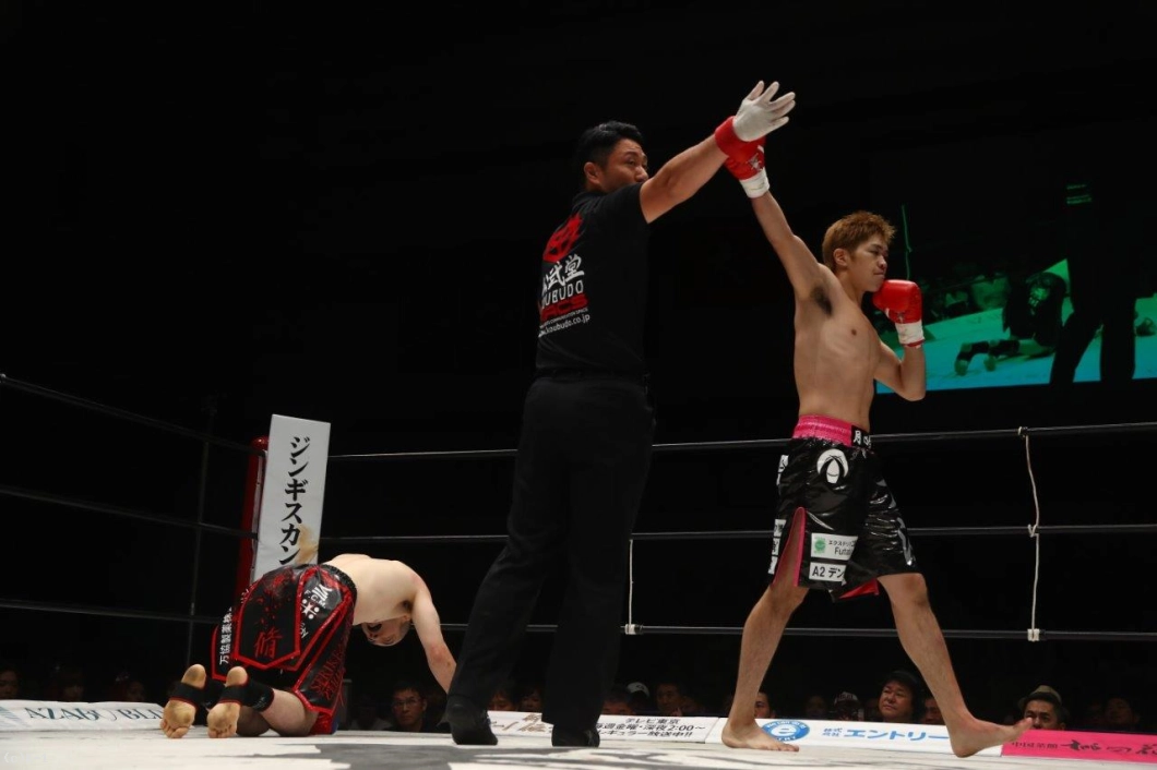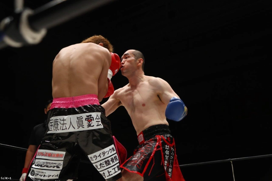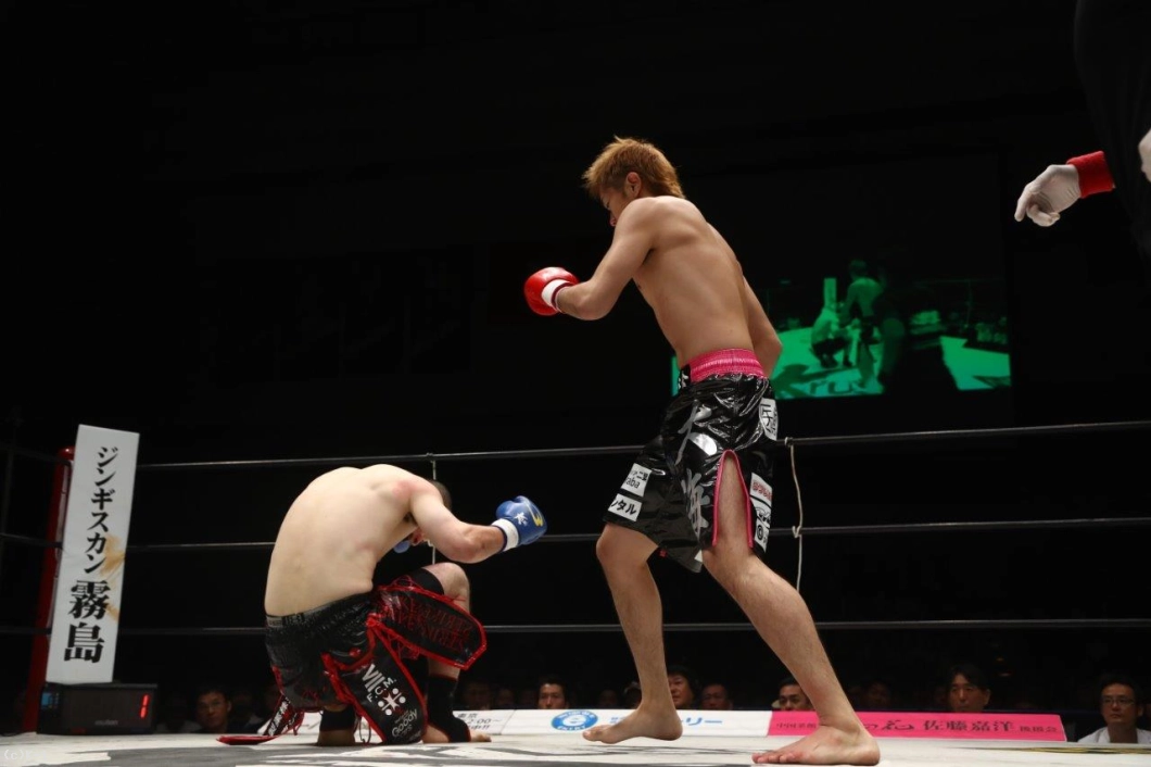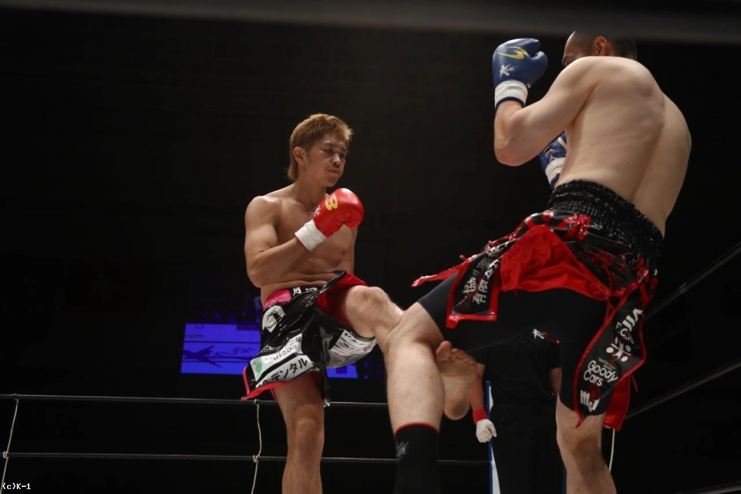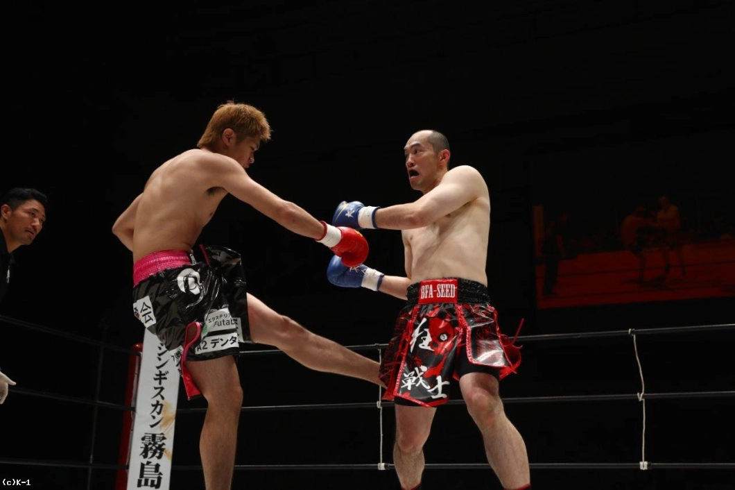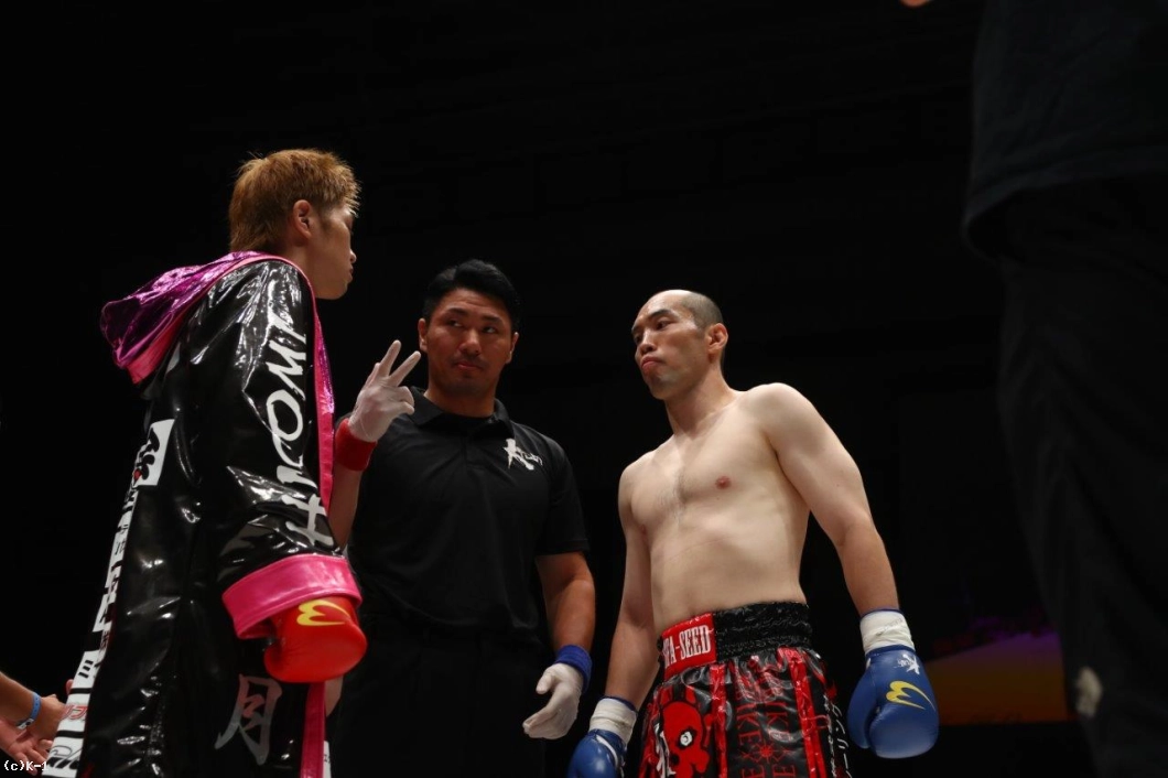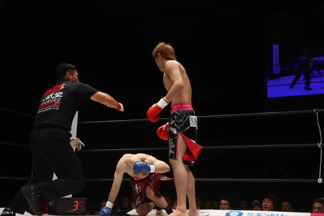 立ち上がって間合いを詰めパンチを狙う田中だが、和島は被弾を許さずさらに左ローでダウンを追加。最後も跳びヒザから入って左ローで3度目のダウンを奪い、田中を初回KOした。