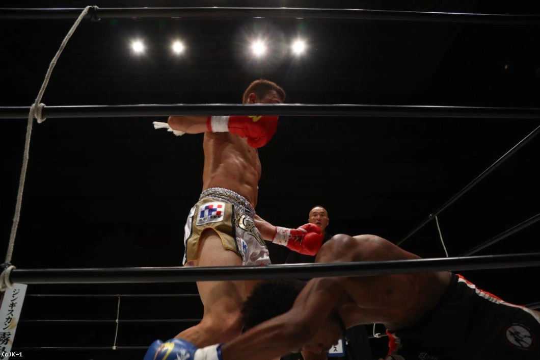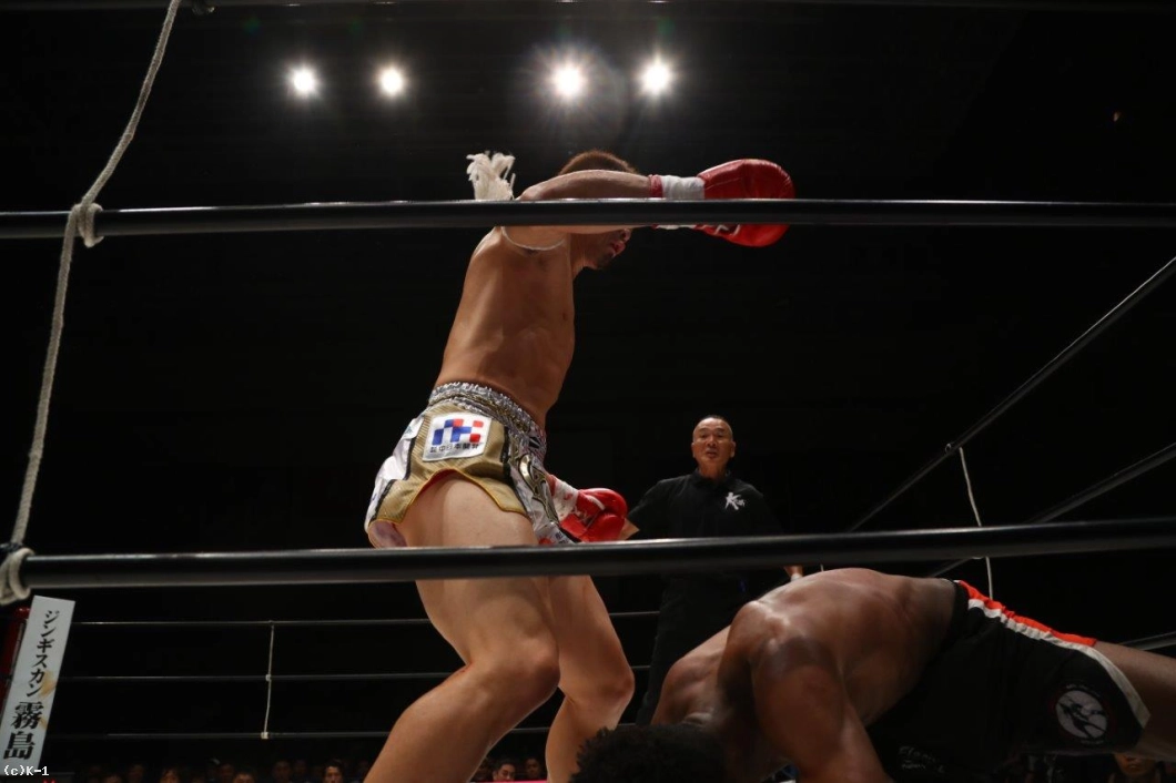 傷の大きい大和だが、ドクターチェックの後で試合再開。しかしすぐさまエルソンに向かうとロープ際で逃がさずに右ストレート、左フックの上下打ちを決めてダウンを奪取。そして立ち上がったエルソンに跳びヒザから向かうと今度は右ストレートで2度目のダウンを奪う。
