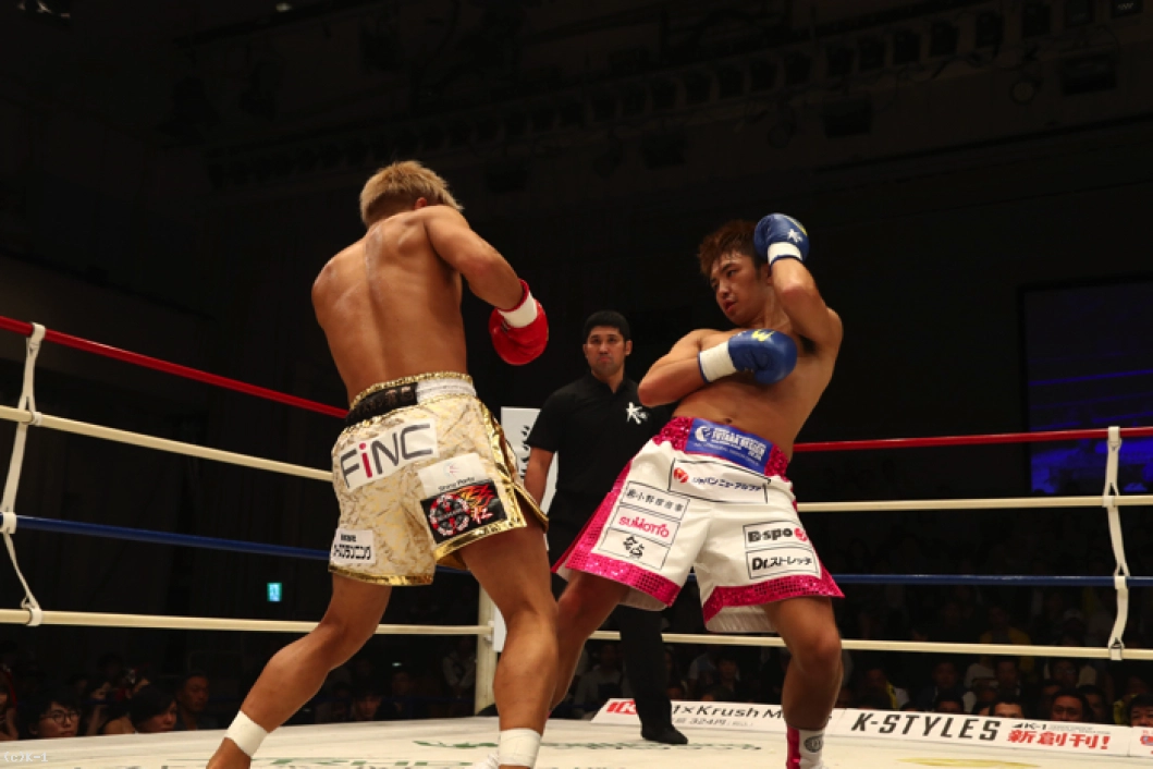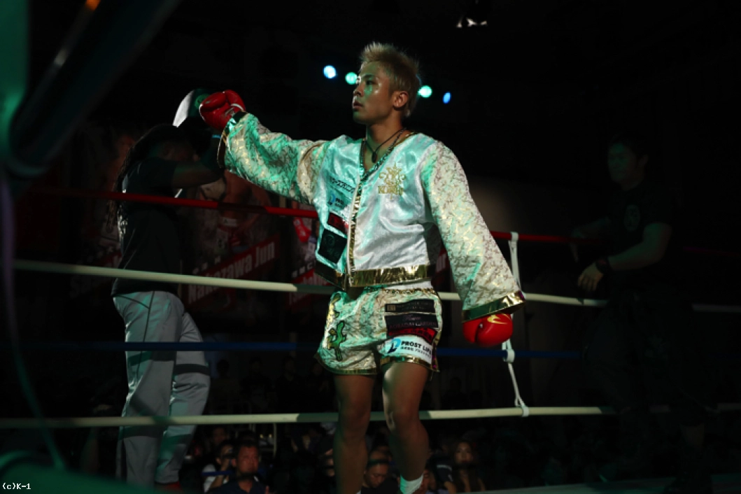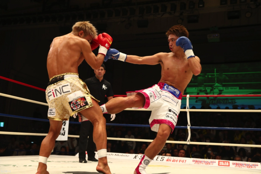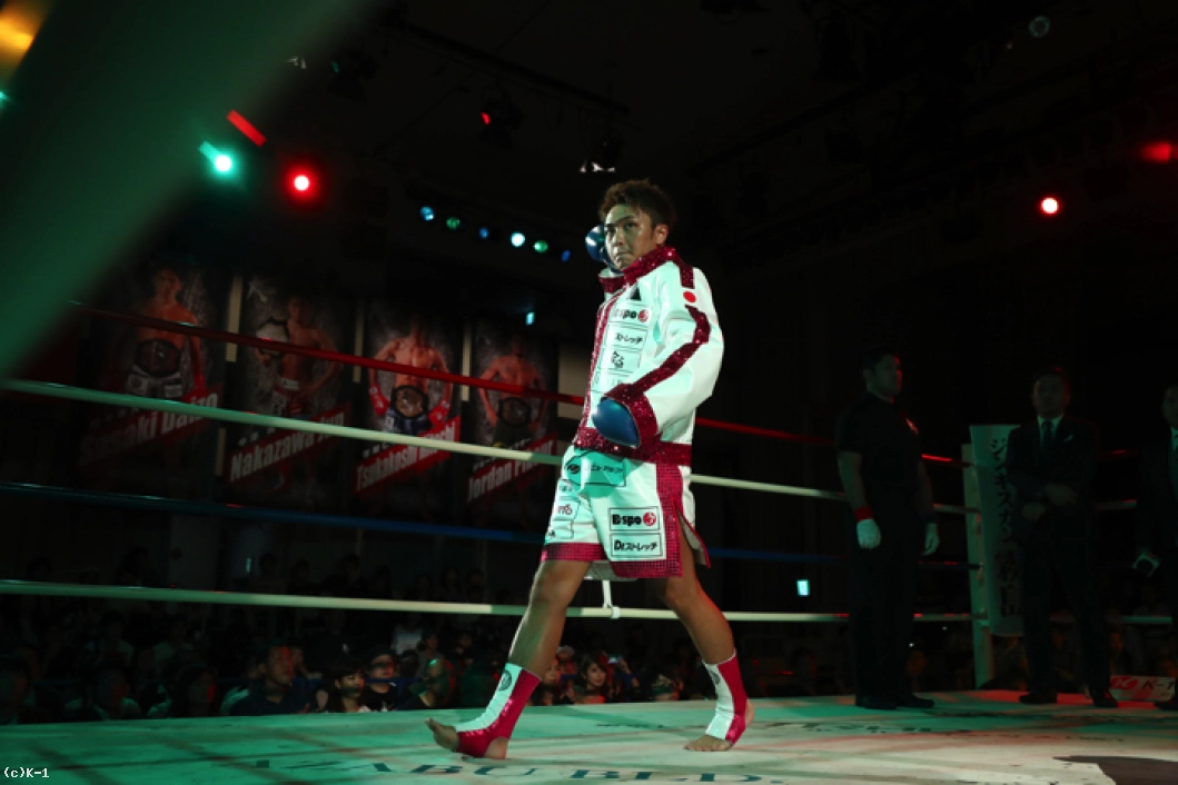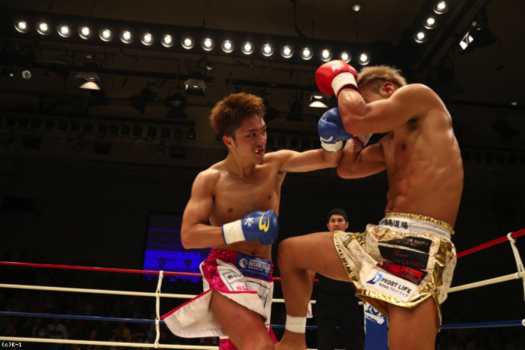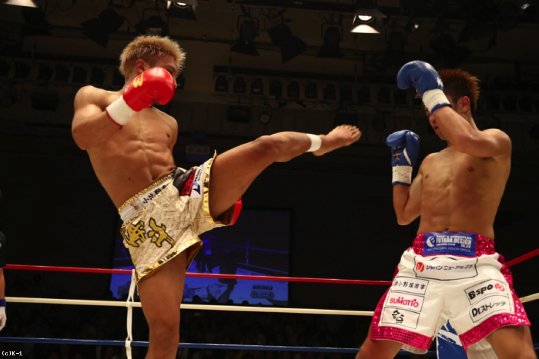 1R、ともにサウスポーで、西京が左ミドルを先制で打ち込むが、小澤も左ローを返す。西京がステップインしてワンツーを放ち、小澤は後方にバランスを崩すが、これはノーダウン。小澤は西京のストレートが気になってか入りづらそうにする。ジャブを突いてローを入れ、タイミングを見てワンツーで小澤に切り込む西京。小澤はローを放つが、西京はそこへストレートを合わせる。