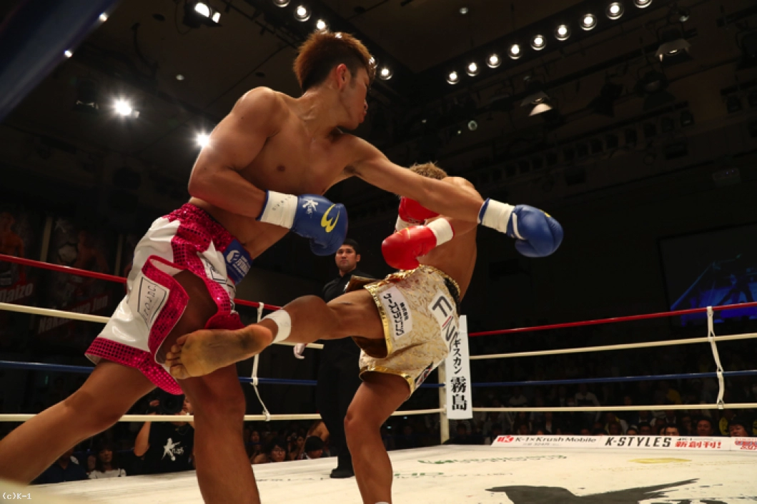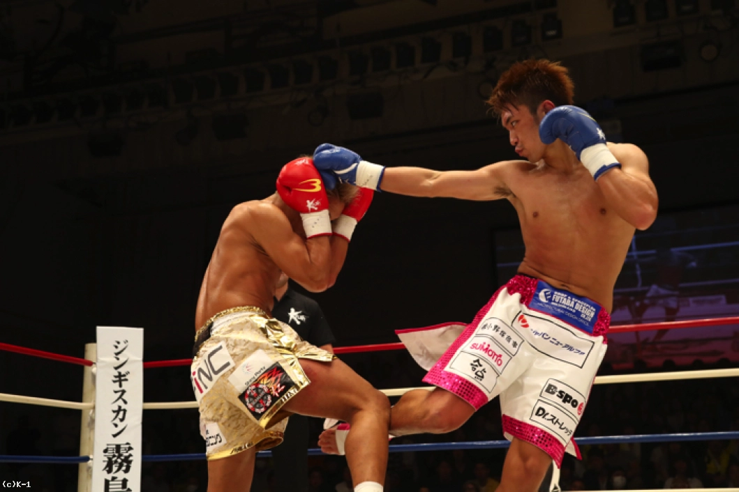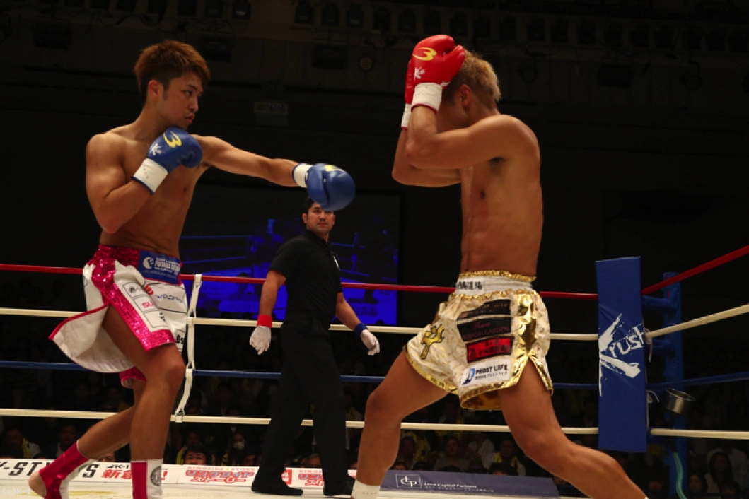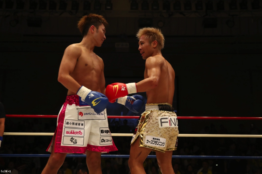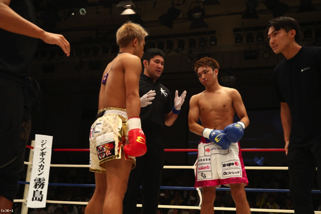 1R、ともにサウスポーで、西京が左ミドルを先制で打ち込むが、小澤も左ローを返す。西京がステップインしてワンツーを放ち、小澤は後方にバランスを崩すが、これはノーダウン。小澤は西京のストレートが気になってか入りづらそうにする。ジャブを突いてローを入れ、タイミングを見てワンツーで小澤に切り込む西京。小澤はローを放つが、西京はそこへストレートを合わせる。