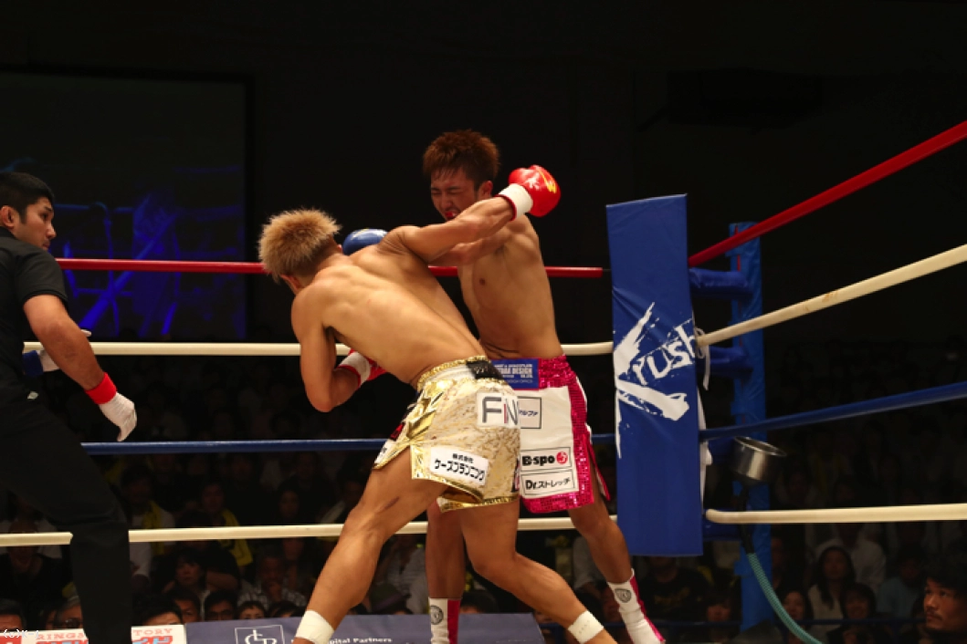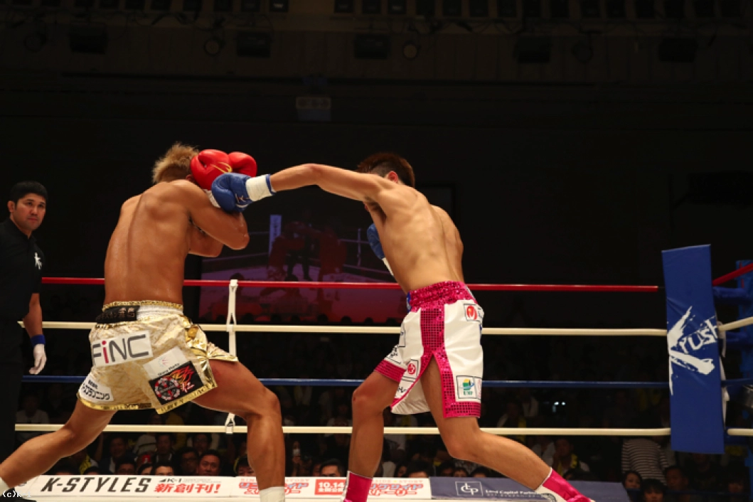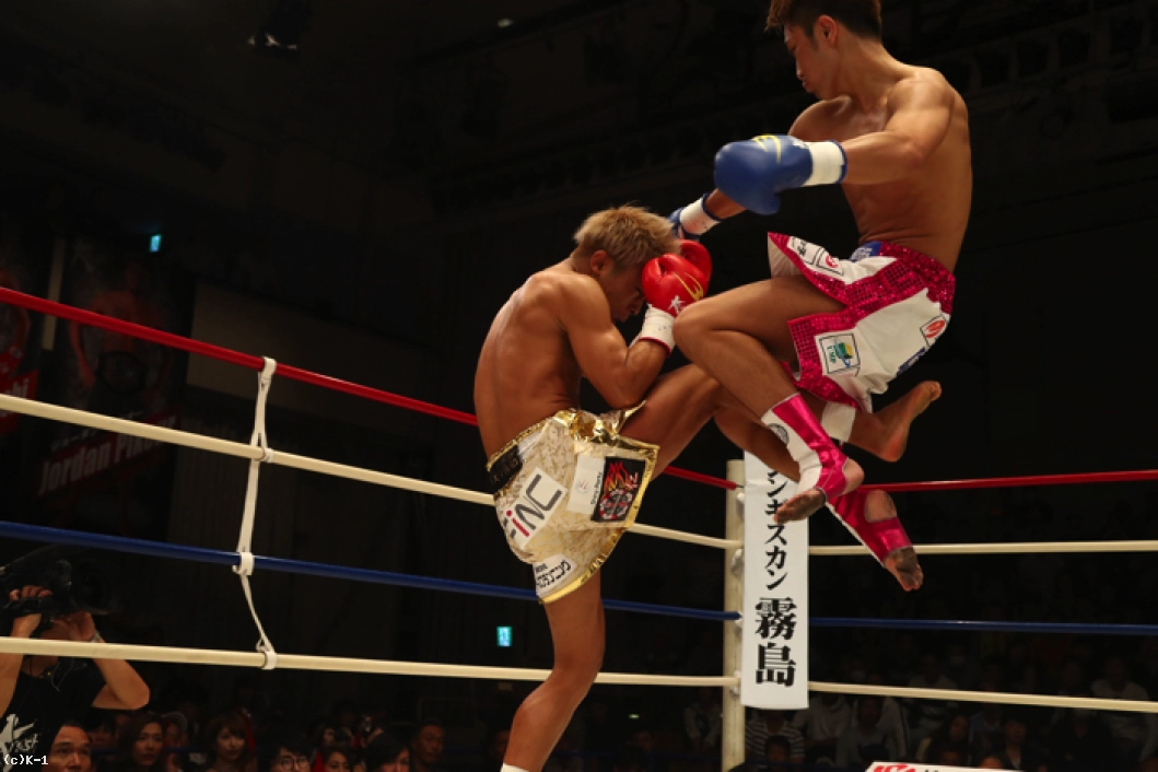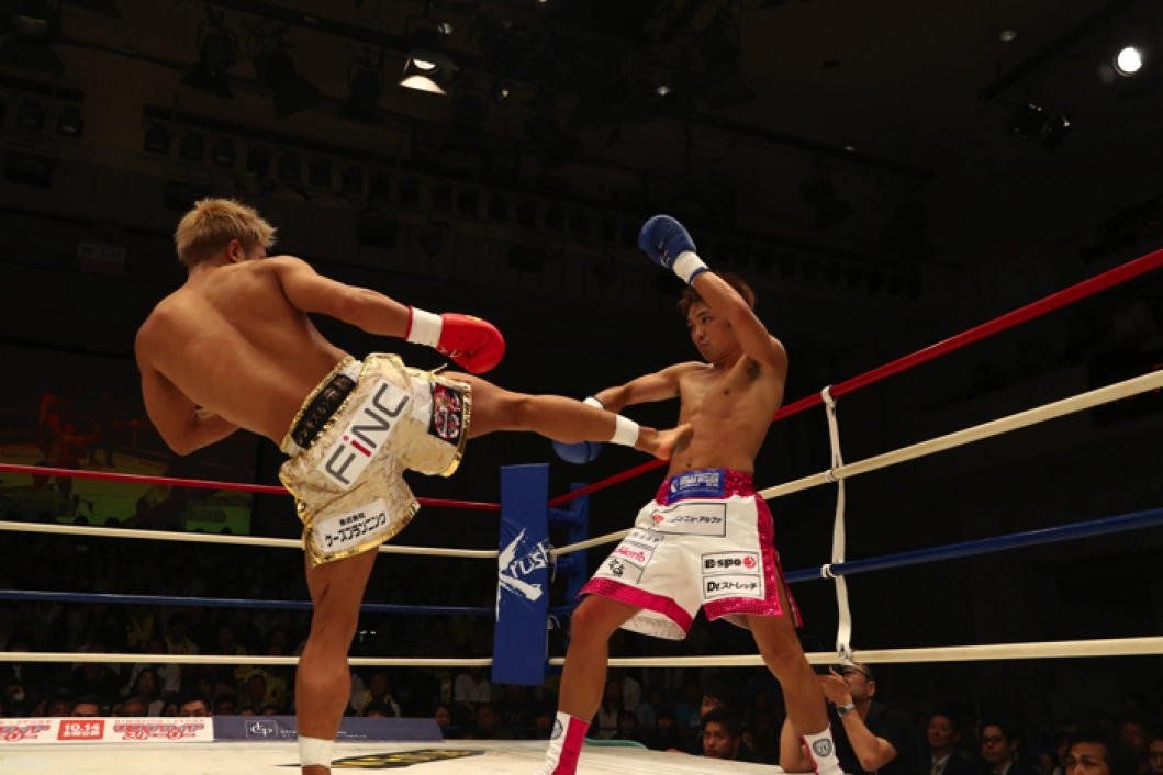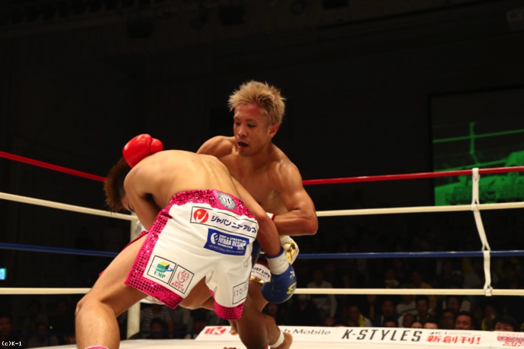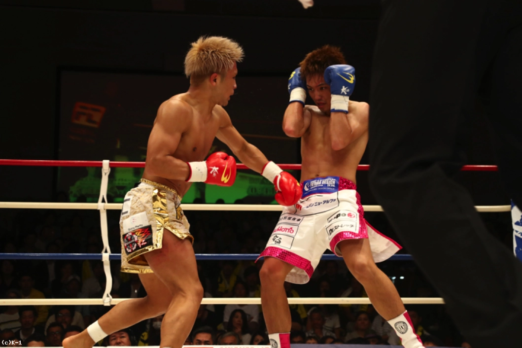 1R、ともにサウスポーで、西京が左ミドルを先制で打ち込むが、小澤も左ローを返す。西京がステップインしてワンツーを放ち、小澤は後方にバランスを崩すが、これはノーダウン。小澤は西京のストレートが気になってか入りづらそうにする。ジャブを突いてローを入れ、タイミングを見てワンツーで小澤に切り込む西京。小澤はローを放つが、西京はそこへストレートを合わせる。