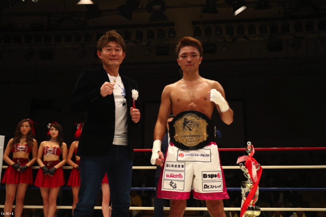 「(試合を振り返って?)ダウンを取ったときはうれしかったですね。でも、まだまだの内容だと思います。(試合プラン通りだった?)1Rは作戦通りで、2Rはダウン取れて。で、3Rはダウン取れたことで気持ちが若干落ちて。あとは相手の圧力を感じましたね。3Rは疲れてヘロヘロでしたけど、打ち合って小澤選手に応えました。(1~2Rは想像通り?)3Rを抜きにしたら想像通りでした。(どこに差があった?)これ一本でやるって決めてから覚悟してやってきたので、正直その差だと思います。(これから目指す王者像は?)ここから無敗街道で、チャンピオンのまま引退したいですね。(成人式までベルトを巻くということだったが、進路選びも念頭に置いて?)そうですね(笑)。高校卒業するときに先生に心配されましたけど、これ一本でやってきてよかったなと思います(今後の目標は?)これがゴールじゃなくスタートだと思って。世界一強いチャンピオン目指すので、今後も応援よろしくお願いします」