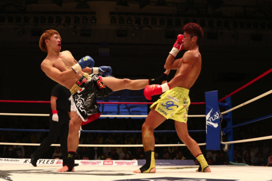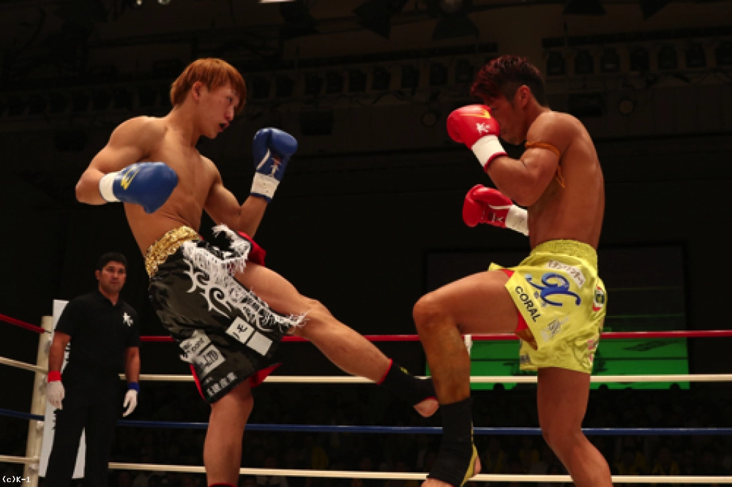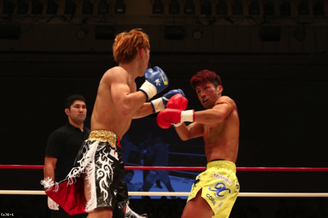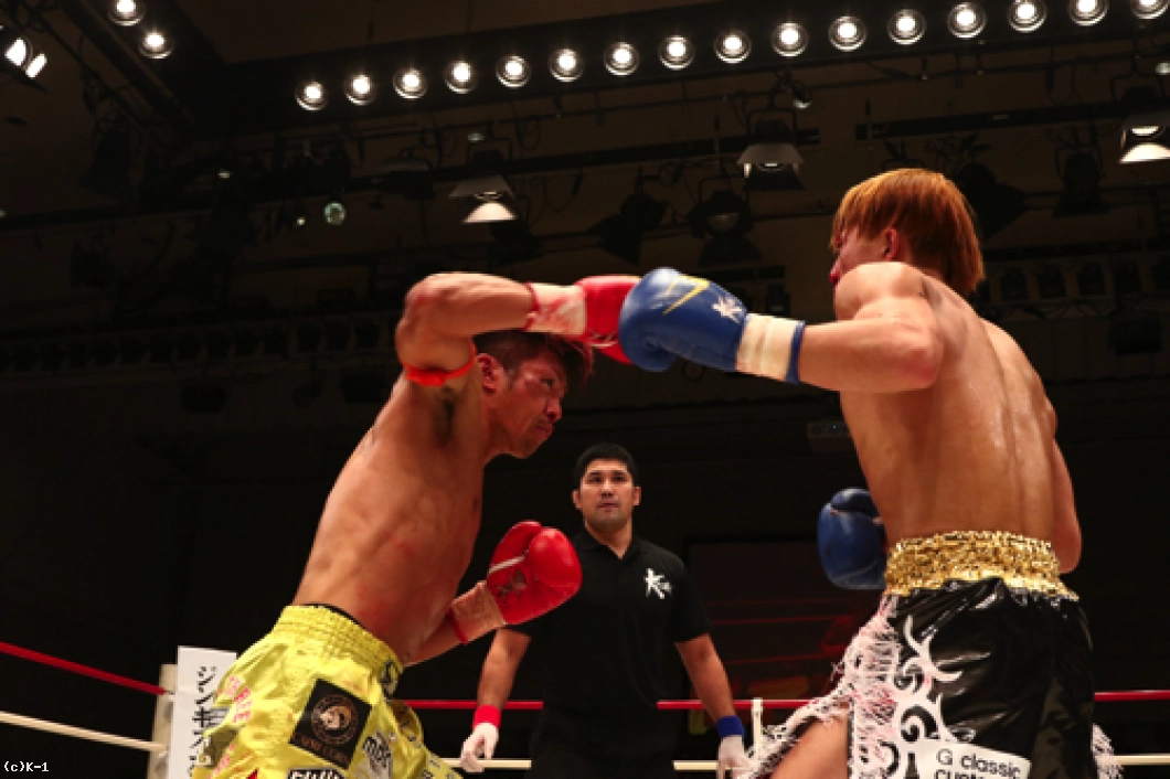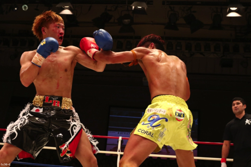 2R、横山が左ボディで来たところを闘士はフックのカウンターで狙い打ち。闘士はやはり距離を詰めさせずに間合いを保ち、前に来る横山にカウンターを狙う戦法を取る。横山は前蹴り・ローで闘士を追う。闘士はしかし圧力を掛けさせず、左フックで横山をとらえていく。鼻血の見られる横山。闘士は距離の開け方が的確で横山のパンチに空を切らせる。しかし横山はならばとローキック。そしてハイキックから右フックの猛ラッシュを闘士に掛け2R終了を迎える。