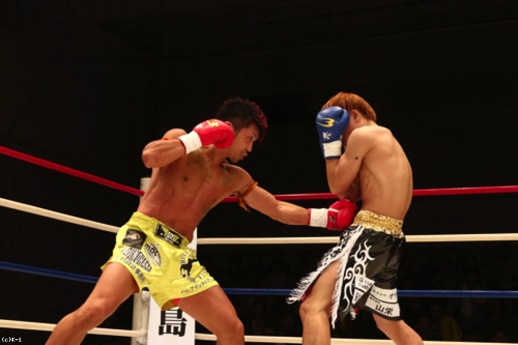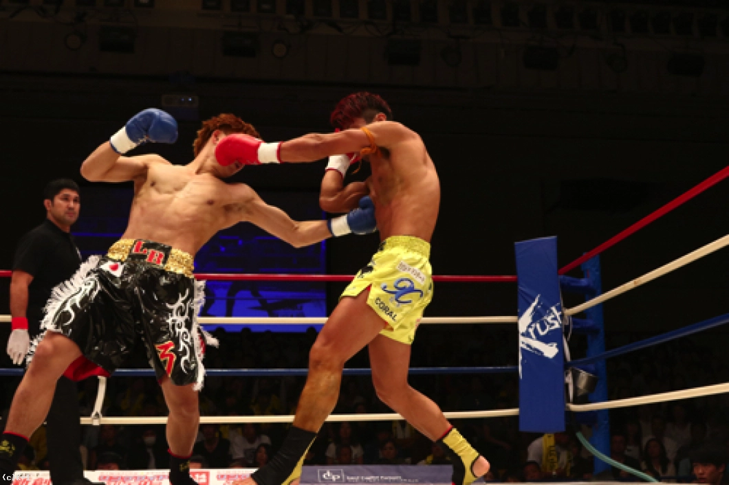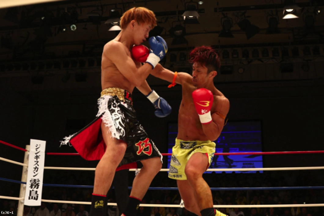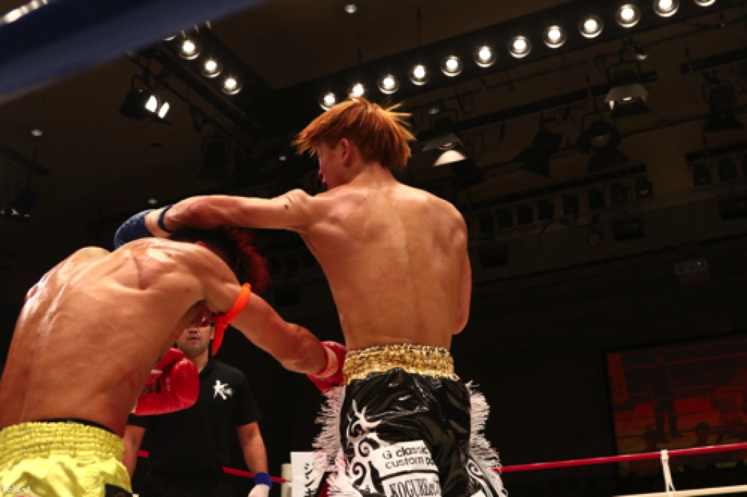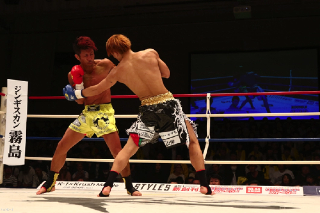 2R、横山が左ボディで来たところを闘士はフックのカウンターで狙い打ち。闘士はやはり距離を詰めさせずに間合いを保ち、前に来る横山にカウンターを狙う戦法を取る。横山は前蹴り・ローで闘士を追う。闘士はしかし圧力を掛けさせず、左フックで横山をとらえていく。鼻血の見られる横山。闘士は距離の開け方が的確で横山のパンチに空を切らせる。しかし横山はならばとローキック。そしてハイキックから右フックの猛ラッシュを闘士に掛け2R終了を迎える。