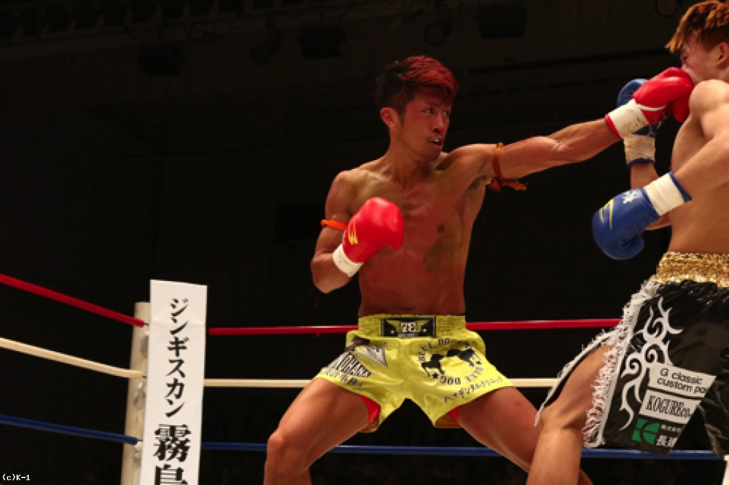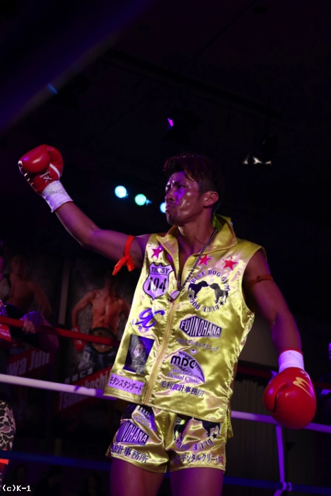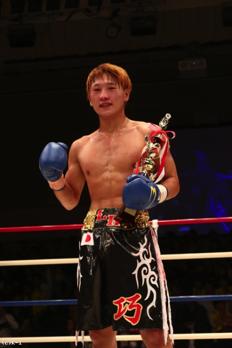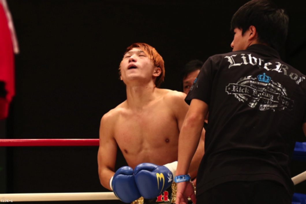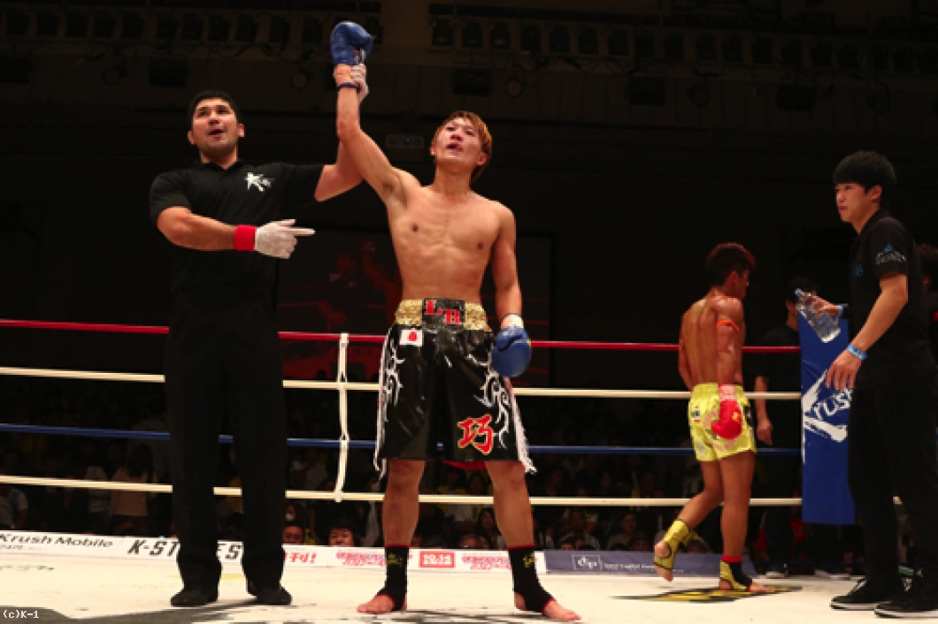 「(試合を振り返って?)宣言どおり、バチバチに打ち合っておもしろい試合ができたので満足です。ただ、点数をつけけるとしたら60点くらいです。KOできなかったので。(相手の印象は?)闘士選手、30代と思えないくらいのスタミナと精神力が凄くて。やっぱり、ベテラン選手だなと思いました。(今後、-60kg戦線でどんな戦いをしていきたい?)まず、一人はチャンピオンの安保選手を倒して。そこから無敗のチャンピオンになろうかなと思ってます。そのあとに世界の、K-1のリングで活躍したいと思います。(今後の目標は?)これからもっともっと強くなって、おもしろい試合をするので応援よろしくお願いします」
