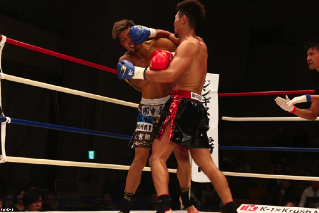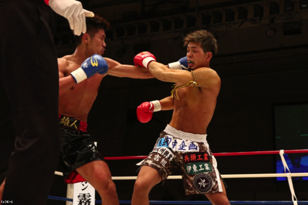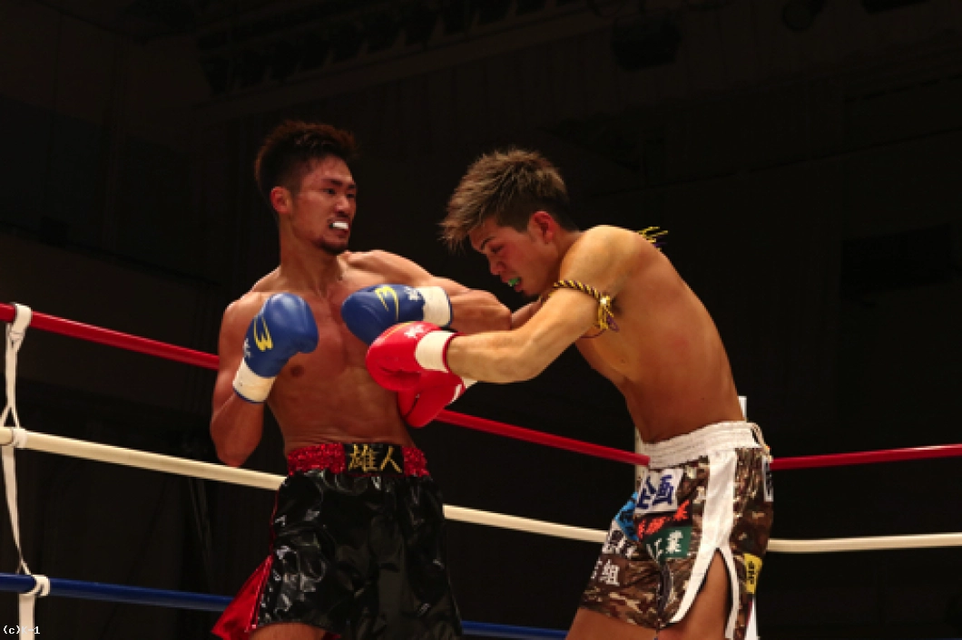 3R、雄人は間合いを詰めての展開を狙うが、距離が開くと海斗が左ミドル。雄人はこの左ミドルを蹴らせない狙いか前に出て間合いを詰めて右ストレートと左フック。馬力を発揮する雄人は接近戦で打ち勝ち、左右フックをヒットする。しかし海斗も左ストレートを当て雄人のアゴを上向きにさせる。だが海斗も左ストレート、左ミドルと応戦し、パンチの打ち合いでも右フック、左ストレートをヒット。しかし、雄人もやはり接近戦に持ち込んで左右フックを当てる。だが、これに海斗も左ハイをヒットして終了する。