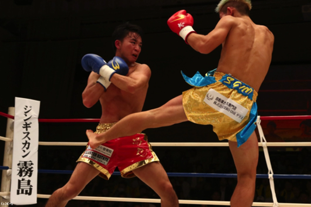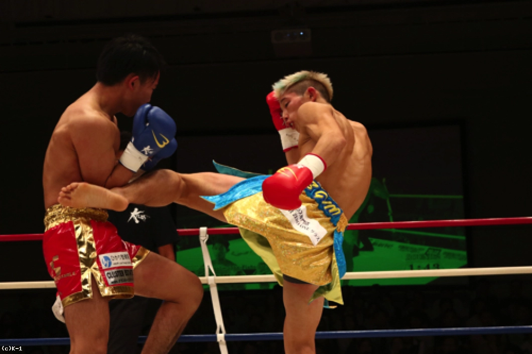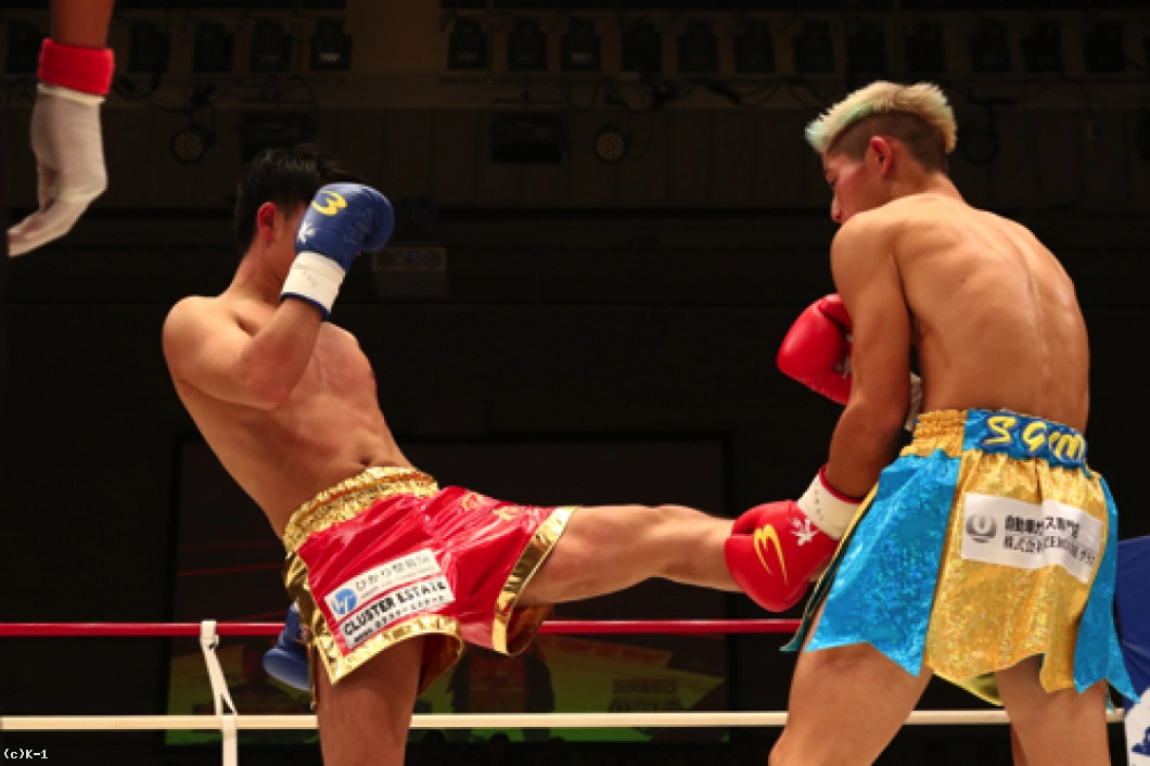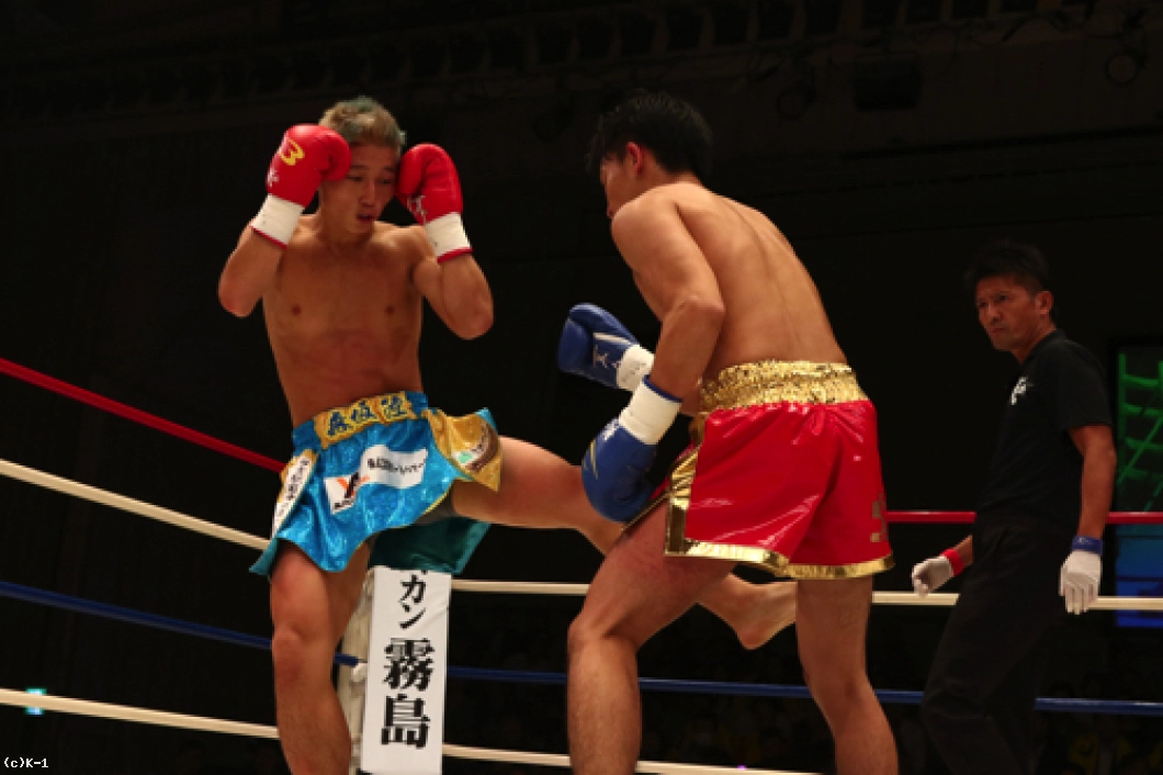 2Rもやはり両者ローを飛ばし合う。しかし小倉はローにパンチを織り交ぜる。だが森坂はインロー、ミドル。小倉は森坂の蹴りで前に出にくいかの様子が見られたが、ローとボディパンチで前進を図る。森坂はバックブロー、バックスピンキック、跳びヒザと繰り出す。小倉もしかしこれで止められず、前に出てローを蹴りためていく。森坂のミドルに小倉はパンチからのローをリターン。両者均衡はまだ崩れない。