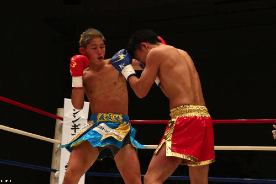 3R、パンチで切り込む小倉に森坂は左ミドルを連打で放ち、ボディへの前蹴りも放つ。蹴りを多く放っているが森坂は動きが落ちない。右ストレート・左フックで行く小倉に森坂は前蹴り、左ミドルをさらに放つが、小倉はその間合いを潰してパンチ勝負を仕掛ける。森坂もしかし前蹴りとステップで距離を作り、さらに前蹴りとミドル。小倉は右ストレートで切り込むが、森坂はこれをかわし、逆に右ストレートをヒット。森坂はミドル連打から右ストレートを当てて試合を終える。