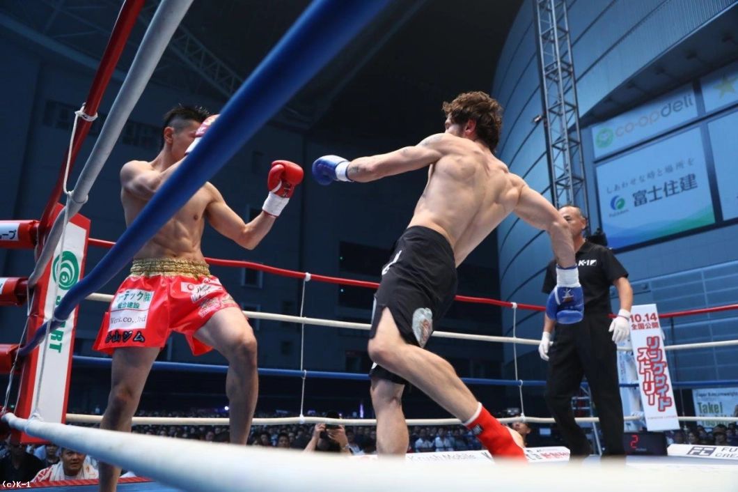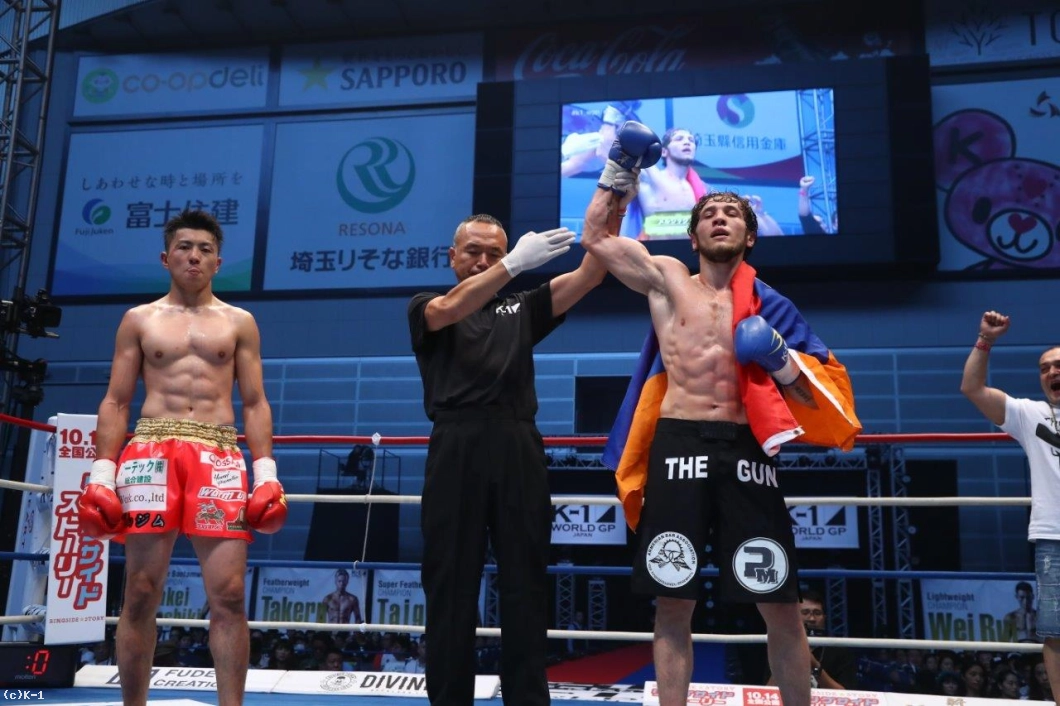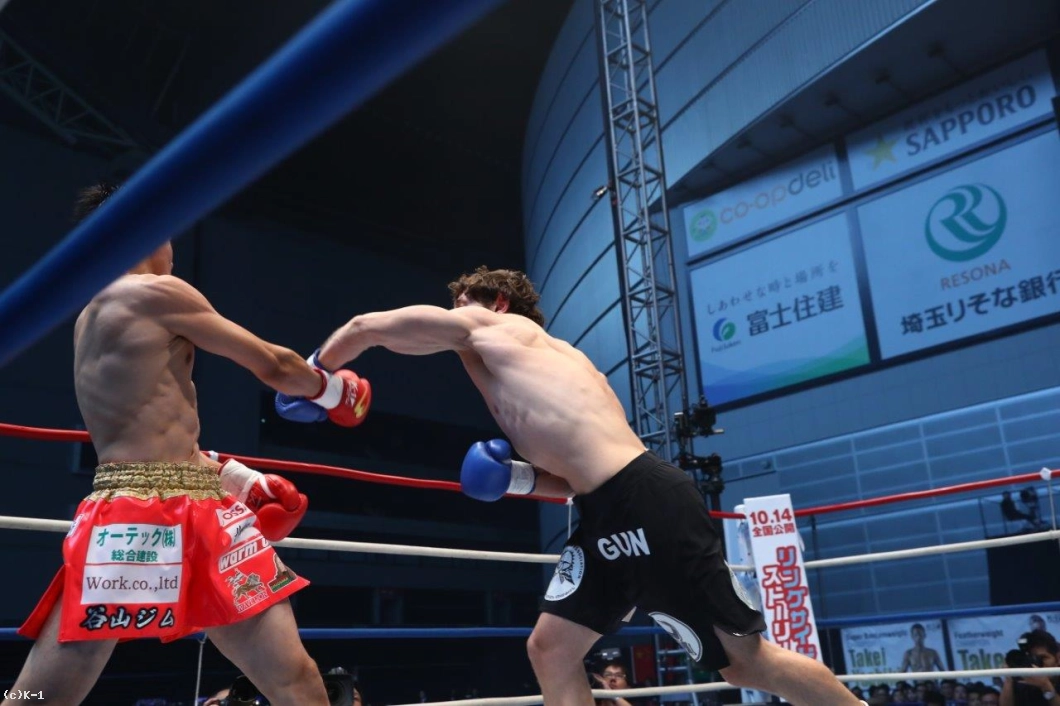 3R、山際は再び右ミドルで向かうが、バダザリアンは左ローから右フック。山際は距離を保ってバダザリアンの強打を警戒しながら右ミドルでの攻めを変えない。バダザリアンはロープ・コーナーに詰められるとクリンチ、あるいは体を回してポジションを入れ替える。右ストレートも当てる山際。バダザリアンは組みつきが増えてレフェリーから注意が出される。バダザリアンは山際のミドルとヒザを嫌がりクリンチを多用し、しのぐようにして試合を終える。