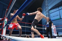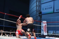 2R、バダザリアンは山際の右ミドルを警戒しながらも前に出てプレッシャーを掛ける。山際はそれでも右ミドルを当てるが、バダザリアンは左クロスを送って山際のアゴをのけ反らせる。山際はしかし戦法を変えずにパンチに織り交ぜ右ミドルを続行。バダザリアンもこの右ミドルがあるため前進を阻まれる。もっと蹴ってこいとばかりのジェスチャーを見せるバダザリアンだが、左腕はジワリジワリと効いているか。しかしここでバダザリアンは左スイングフックのヒットからストレート、フックと荒々しく繋いでダウンを奪取する。