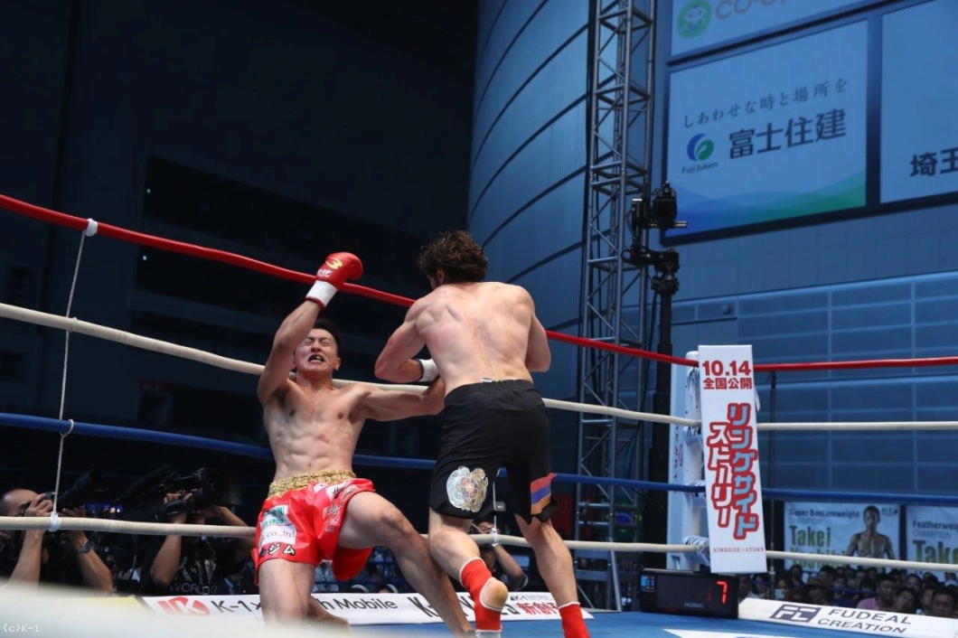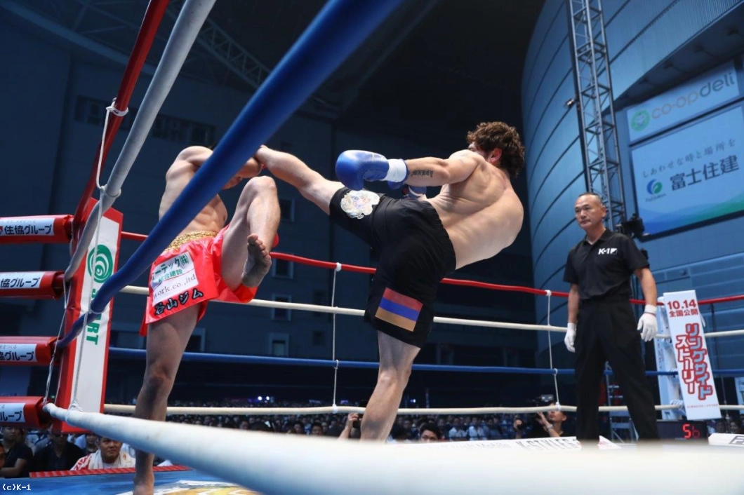 1R、バダザリアンはサウスポーから左ハイ、後ろ回し蹴りと連続で大技を見せ、客席をどよめかせる。山際の右ミドルにすぐ左フックをフルスイングするバダザリアン。この左フックはスピードと威力があり、客席は再びどよめく。プレッシャーで山際をコーナーに追い込むバダザリアン。前蹴りをさばきながら山際はバダザリアンに右ミドルを当てていく。ラウンド終盤、バダザリアンは左ハイ、スピードのある後ろ回し蹴りで山際の頭部を狙う。