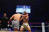 3R、久保は距離を作り、前蹴り、左ミドル。モハンはこれに対しガードを固めて前に出て距離を詰めていく。前に来るモハンに久保は左ストレートのカウンター。モハン、渾身の左右フックを久保はダッキングして当てさせない。久保の前蹴り、左ミドルがとらえると、モハンはダメージがあったかやや下がる。しかし左から返した右フックを久保にヒット。久保は体をつけてのヒザ蹴りを連打しモハンをダウンをさせる。