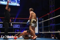 ボディのダメージを見て取った久保は、ヒザからさらにボディ打ち。久保はミドルとヒザで迫るが、モハンは倒れない。しかし手が出なくなりコーナーでスタンディングダウンを宣せられる。モハンは右目じりから出血も見られる。最後はフルパワーの左フックを振るって空振りで倒れ、モハンはらしさを見せて終わる。