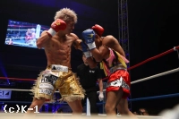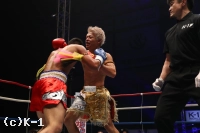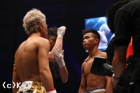 2R、武尊の前進を前蹴りで止めるワン。後ろ回し蹴りも繰り出し武尊を幻惑する。右ストレートも軽くではあるが武尊の顔をとらえる。武尊はワンの前進にボディへのヒザを合わせ、大きな右ボディフック。だがワンも前蹴りを止めず、武尊の前進を妨げる。しかし武尊は左ミドルからステップインしての左右ボディフック、ボディへのヒザ、左ローと決める。武尊はワンのプッシング、顔面前蹴りとさらに前進を阻まれるが、ボディフックからの左ロー、ボディフックで削っていく。
