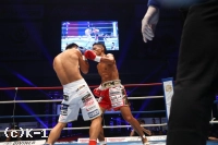 3R、武居はボディから顔面とパンチを回転させ、伊澤のガードが落ちたところでハイキック。これで伊澤をダウンさせる。立ち上がった伊澤をコーナーに詰め武居は左右ボディフックをまじえたラッシュで2度目のダウンを奪取。フィニッシュへ向かうと打ち合いに来た伊澤のフックを浴びるが、これで止まらずボディを交えたラッシュでここも攻め落し3ダウンで勝利を決めた。
