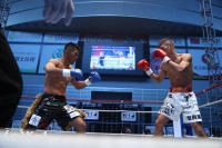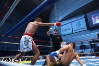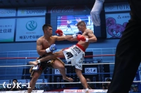 1R、サウスポーの牧平にKENJIはオーソドックスから右ミドル、右フックを振るっていく。牧平はKENJIの右フックを左腕のブロックで弾きながら左の蹴りをハイ・ミドル、ヒザと放つ。しかし牧平の左ローがローブローとなってしまい、KENJIに一時インターバルが与えられる。