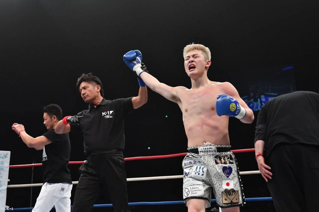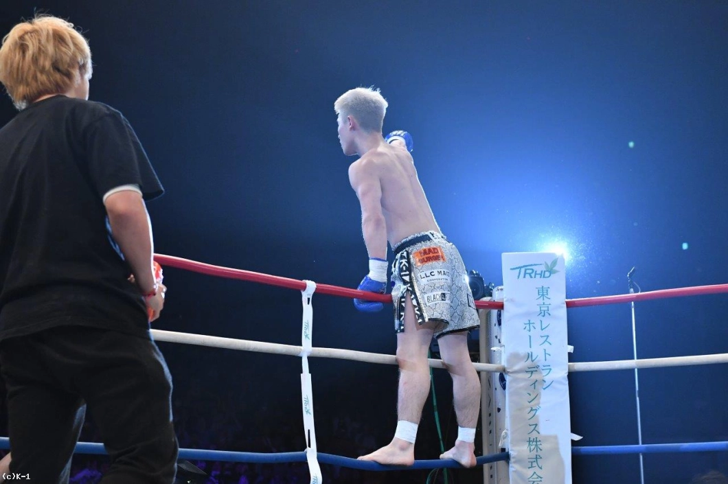 「いつも試合が終わった後、言うことを考えているんですけど、今回はとりあえず勝ちたかったので考えていませんでした。お父さん、お母さん、龍児さん、彼女や応援してくれるみなさんにありがとうを伝えたいです。これから僕がスターとしてK-1の本物のスターになって世界最大のイベントにしたいと思うので、みなさんもよろしくお願いします」