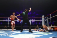 1R、小宮山はサウスポーに構え、スアレックのミドルを空振りさせていく。距離を遠く保つ小宮山。間合いが遠いと見たスアレックはパンチをブンブンと振り回して前に出る。しかし小宮山も距離を取っているためパンチはよく見えており当てさせない。そしてスアレックの入ってくるタイミングを見て取ったか、ストレートを放って出てきたスアレックにカウンターの左ハイ一閃。これでスアレックをバタリと倒してKOした。