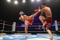 1R、小宮山は離れた位置から前蹴り、ローを飛ばす。そして後ろ回し蹴りをボディに入れるが、空手出身の武尊も後ろ回し蹴りを返す。小宮山はフットワークを止めずにリングを右回り。武尊はジリジリと前に出て小宮山をロープに詰める。武尊は小宮山の前蹴りをヒザでカットし前蹴りを出しにくくさせる。そして前蹴りからバックブローを繰り出すもこれは小宮山が当てさせない。武尊はボディフックを打ち込み、さらに小宮山を追って初回を終了。