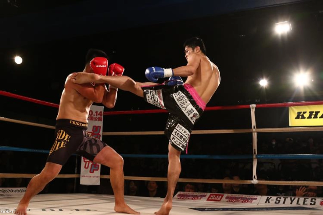 1R、サウスポーの和島がしっかりと距離を取りながら左のインローを当てる。そこから左ミドル・左のヒザ蹴りも繰り出す和島は、嶋田のガードごと吹き飛ばすような左ミドルでダウンを奪う。再開後、嶋田も右フックを強振して前に出るが、和島が的確にインローを蹴り込んでダウンを追加。そのまま嶋田は立ち上がることが出来ず、和島が豪快なKO勝利を収めた。