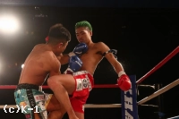 1R、パンチとローで前に出ていく真辺。芦澤は距離を取りながら右ストレートとヒザ蹴りを突き刺す。突進する真辺に対して、芦澤はヒザ蹴りとパンチでボディを狙い撃ち。バックブローから攻撃をまとめるが、タフな真辺はガードを固めて前に出ていく。