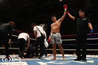 2R、杉本は右インロー、アウトローと連続でヒット。そこから前に出ると、ボディに右ミドルを突き刺した上で右ストレート。これにRUIは横向きに倒れて起き上がれず、杉本のKO勝ちとなった。