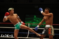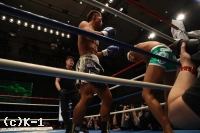 3R、村越はジリジリッと歩を進めて芦澤に迫る。パンチがよく見えている印象で芦澤の左フックを空振りさせ、すぐに右フックを返してヒット。左ミドルでもとらえ、芦澤の突進に合わせるカウンターの右フック、バックブローとさらにヒットを重ねる。芦澤は身上とするケンカファイトで体ごとぶつけるように向かい左右のパンチで猛攻。だが村越はその中でも冷静でクリーンヒットは与えず、左インロー、ボディへのヒザを見舞う。判定は29-29、30-29、30-29の2-0で村越。K-1デビュー戦を勝利で飾った。