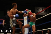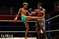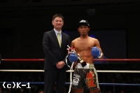 「(試合を振り返って?)今回、自分の中でデビュー戦という気持ちが強かったので。インパクトを絶対に残して勝ちたいという気持ちがあって。試合中、KOできるかと思って舞い上がっちゃった部分があって。(対戦相手の印象は?)2Rで効いたかと思って、倒せると思ったんですけど、逆に前に出て来たので、思ったよりも気持ちが強い選手という印象です。(今後の目標は?)K-1には一番上を取るつもりで来てるので、しっかりベルトを狙っていきたいと思います」