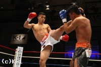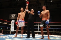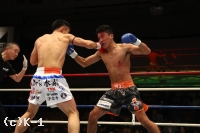 3R、廣野を腕で押して下がらせ、日菜太は左ハイ、左ロー。距離を作って蹴りたいが、廣野がどんどん間合いを詰めてくる。日菜太の右ミドルの直後に廣野は左ストレート。日菜太は距離ができると左ミドル、左ハイを放つが、廣野はこれに下がらない。ならばと日菜太はボディへのヒザ、左ストレート。日菜太は右フックから左ストレートでパンチをまとめて左ロー。廣野も反撃するものの後手となってしまう。それでもラウンド最後は左クロスを日菜太に打ち込み終了。判定は29-29、30-29、29-28の2-0で日菜太。接戦を制し、アラゾフへの挑戦権をものにした。