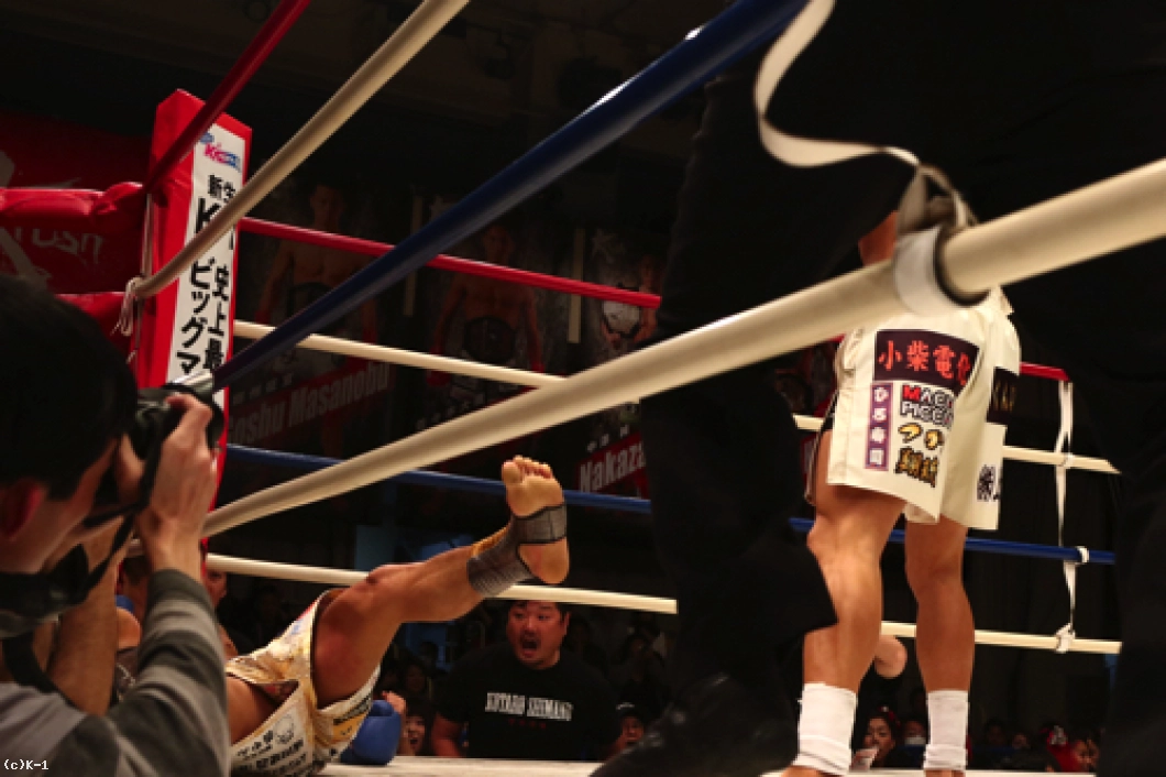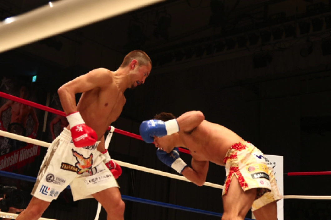 襲い来る島野に山本は三日月蹴りを打ち込むが、島野は止まらない。強打のフックをダッキングでかわす山本だが、島野は左ボディから顔への左フックで山本をフラつかせ、ここでレフェリーは試合をストップ。島野が勝者となり王座挑戦権をものにした。試合後、王者・郷州がリングに上がり、郷州・島野がそれぞれタイトル戦への意気込みを語った。