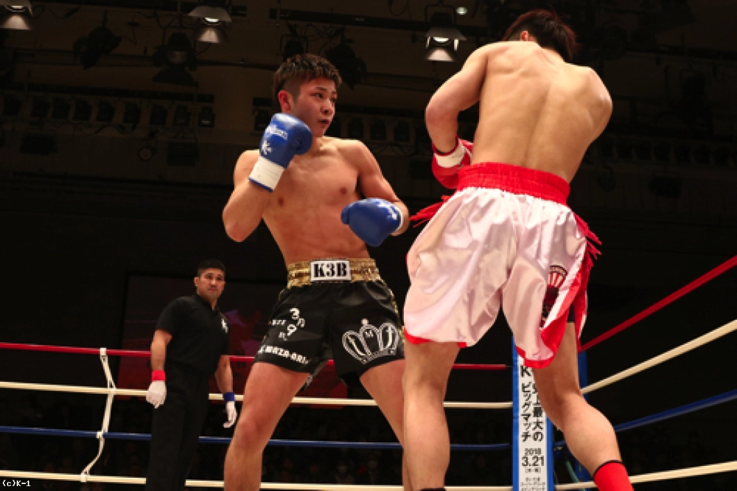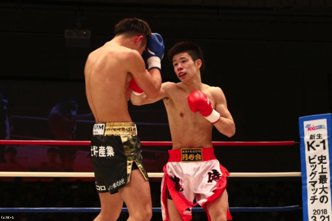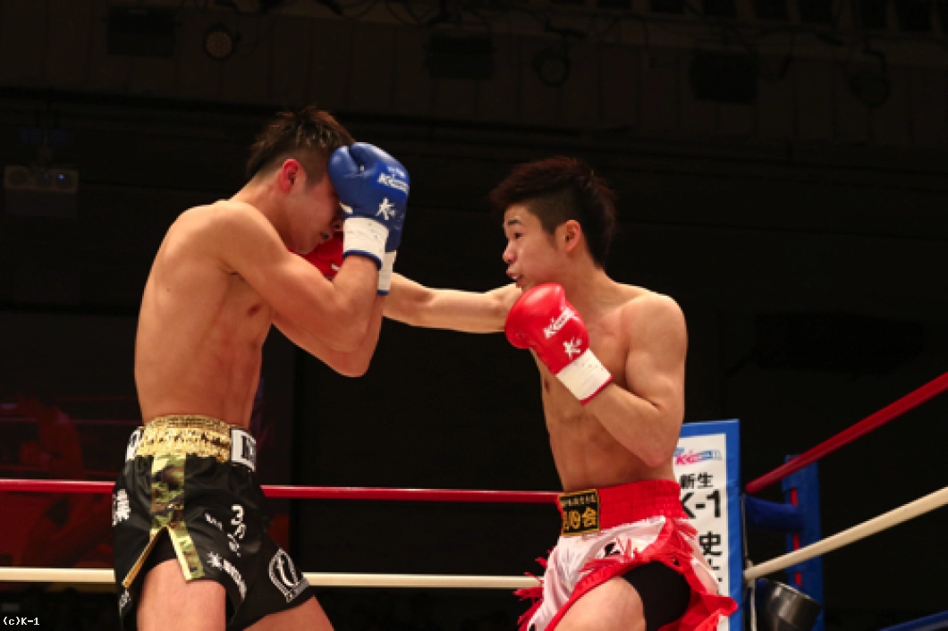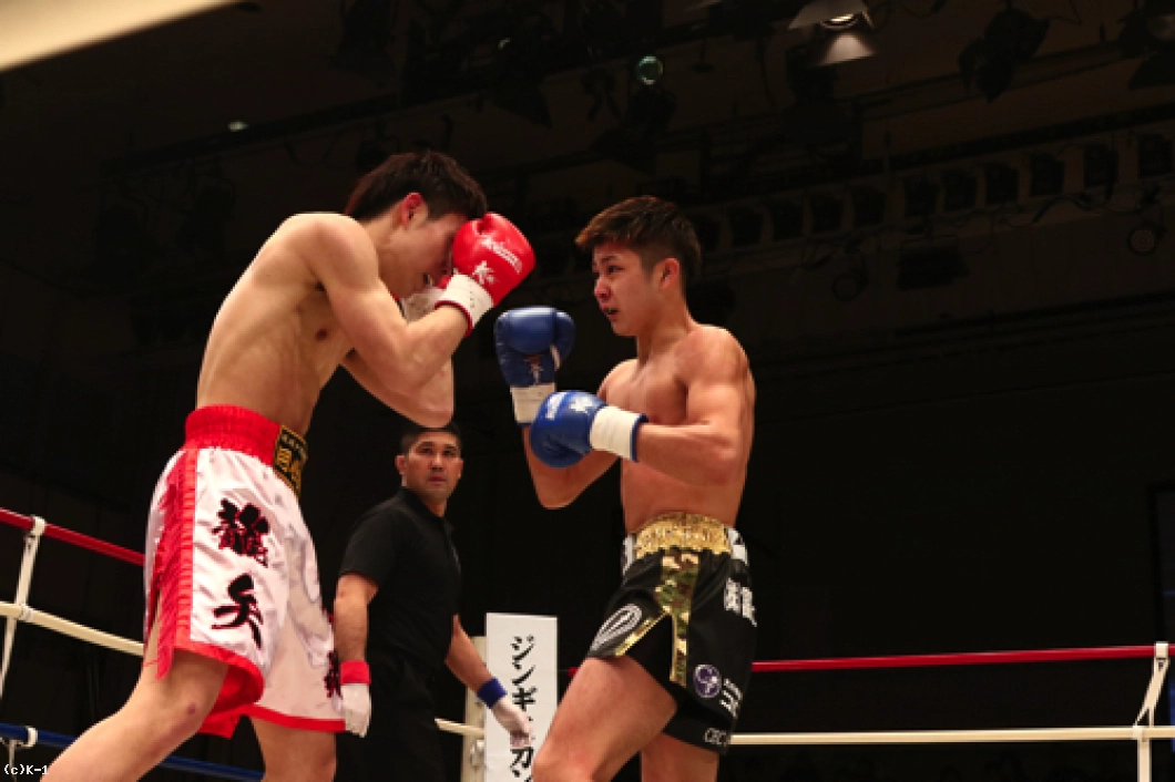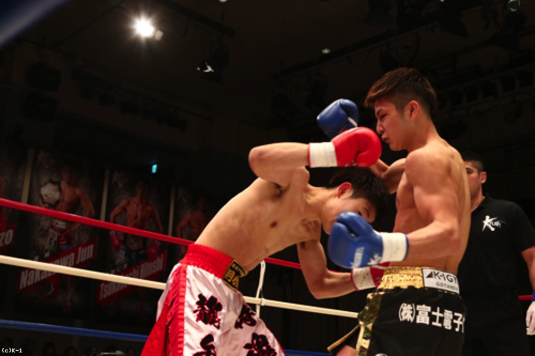 1R、椿原は前蹴りを飛ばして玖村の接近をけん制。しかし玖村が近づいて左ボディを入れると、椿原も強気に同じ技をやり返す。その後も前蹴りを放っていた椿原だが玖村は打ち合いに呼び込み、まず右ストレートを相打ちのタイミングで放ち、続いて椿原がフォローした左フックをかわすと直後に右クロスを打ち込みダウンを奪取。立ち上がった椿原だがやや焦りが感じられ、前蹴りが無くなっている。玖村がプレッシャーを掛けてロープに詰めて初回を終える。